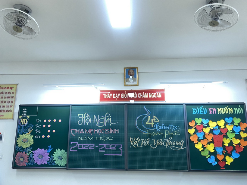 Tới thăm từng lớp ta bắt gặp không gian buổi họp được chuẩn bị chu đáo. Bàn ghế được thay đổi cách kê tạo nên không gian họp gần gũi, thân thiện. Bảng được trang trí đẹp mắt, trên bảng những dòng chữ: “ Kết nối – Yêu thương” , “ Thấu hiểu – Chia sẻ - Yêu thương”, “ Thấu hiểu để yêu thương” cho thấy chủ đề của Hội nghị và mục đích hướng tới việc xây dựng Trường học Hạnh phúc. Mỗi lớp, tùy theo điều kiện, đối tượng học sinh giáo viên chủ nhiệm tìm ra những nội dung, hình thức phù hợp: viết thư tỏ lòng biết ơn, bày tỏ những điều các con ước ao, khát vọng… Bước vào lớp phụ huynh thật sự ngữ ngàng, thích thú. Nhiều phụ huynh không dấu nổi xúc động khi đọc thư con. Trong niềm hạnh phúc vô bờ bố mẹ viết để gửi lại cho con những lời yêu thương mà ngày thường chưa thổ lộ. Nhiều phụ huynh chia sẻ với cô giáo: “ Bây giờ em thực sự nhận ra cần nói với con những lời ân cần, ngọt ngào thay bằng những lời ra lệnh, quát tháo …”; “ Cô ơi! Ngày thường em khó nói được những lời âu yếm với con, sao em không nghĩ đến việc viết thư cho con cô nhỉ, thật sự em cảm ơn cô!”. Những dòng tin nhắn của phụ huynh sau buổi họp: “ Em chưa bao giờ dự buổi họp ý nghĩa và xúc động như hôm nay” là minh chứng cho thành công của việc đổi mới hình thức họp phụ huynh mà nhà trường áp dụng.