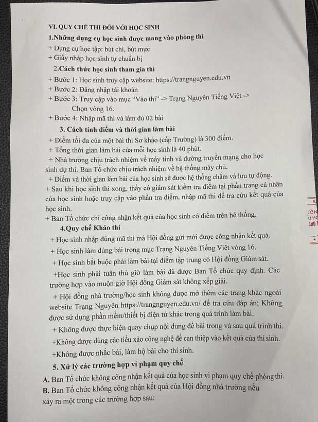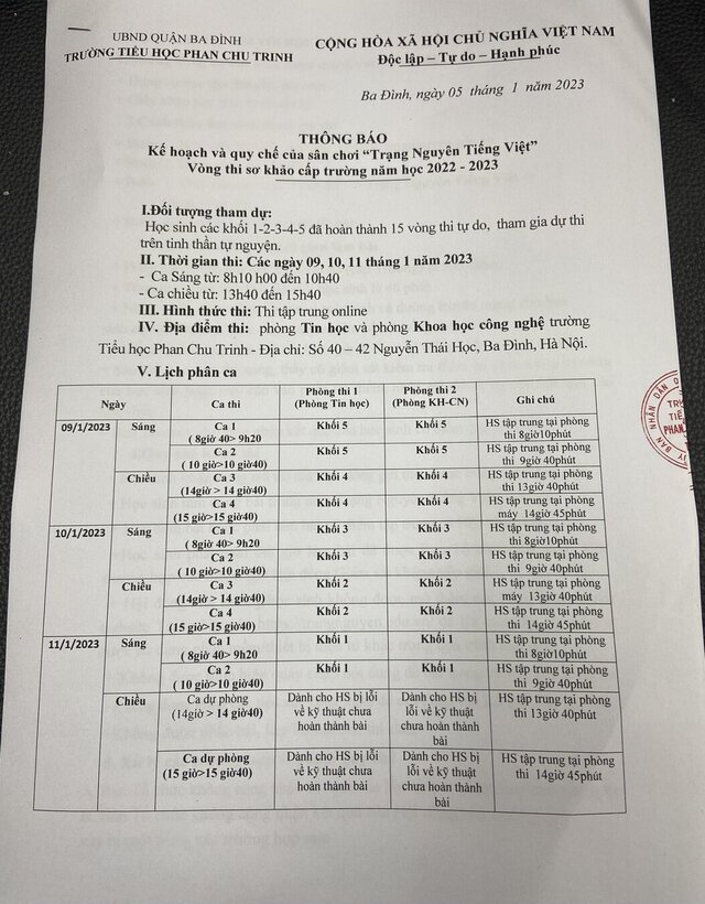 Trường TH Phan Chu Trinh thông báo kế hoạch và quy chế tổ chức sân chơi "Trạng Nguyên Tiếng Việt" vòng sơ khảo cấp trường năm học 2022 - 2023: