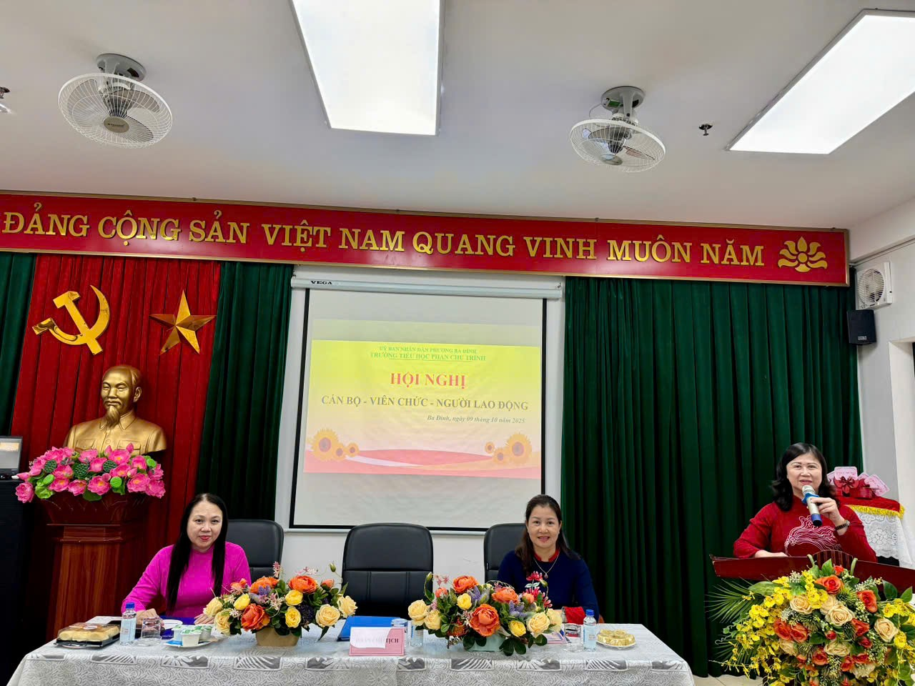 Hội nghị cán bộ, công chức, viên chức trường Tiểu học Phan Chu Trinh năm học 2025 - 2026 đã thành công tốt đẹp. Mỗi cán bộ, giáo viên, nhân viên trong nhà trường tự hào, hiểu rõ trách nhiệm của mình, phấn đấu theo mục tiêu đã đề ra: