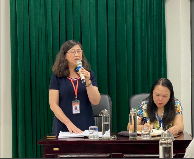 Cô giáo Đỗ Thanh Hà – Khối trưởng chuyên môn Khối 4 - phát biểu tại Hội nghị