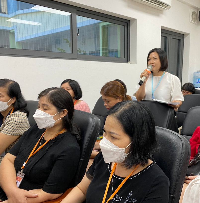 Bà Đinh Thị Quỳnh Liên – Trưởng ban Đại diện cha mẹ học sinh Lớp 1D phát biểu tại Hội nghị