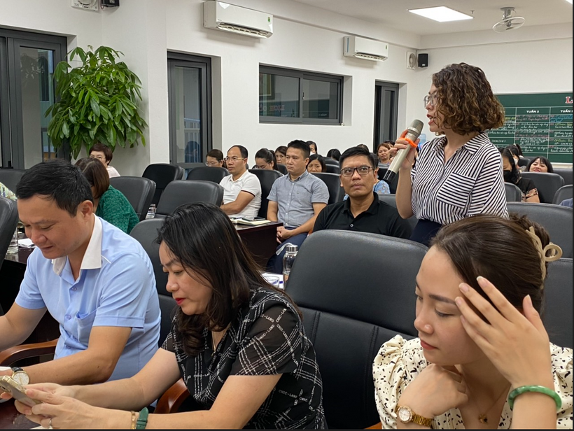 Bà Nguyễn Thị Thu Hiền – Trưởng ban Đại diện cha mẹ học sinh Lớp 3A phát biểu tại Hội nghị