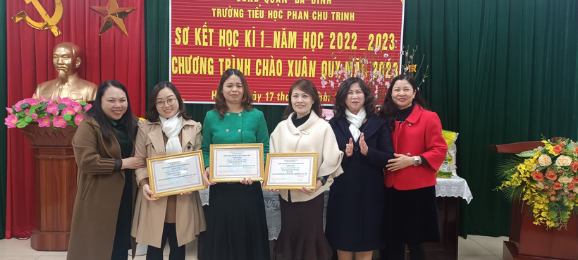 Học kỳ I vừa qua, nhà trường đã hưởng ứng các hoạt động thi đua dạy và học của ngành, đặc biệt là Hội thi giáo viên dạy giỏi Cấp Quận Nhà trường đã đạt thành tích Xuất sắc gồm 1 Giải Xuất sắc môn Tiếng Anh – cô giáo Đoàn Hồng Giang, 1 giải Nhất môn Tiếng Việt – cô giáo Tăng Thị Thùy Dương, 1 Giải Nhì môn Toán – Cô giáo Nguyễn Kiều Anh. Đồng chí Hoàng Thị Lan Hương đánh giá cao sự đồng hành, đoàn kết của tập thể nhà trường đã tạo nên sức mạnh tổng hợp để đạt được kết quả rực rỡ, đáng tự hào trong học kì I vừa qua.