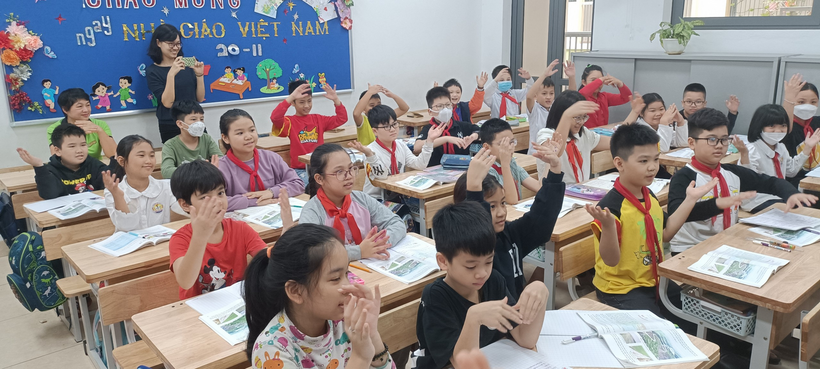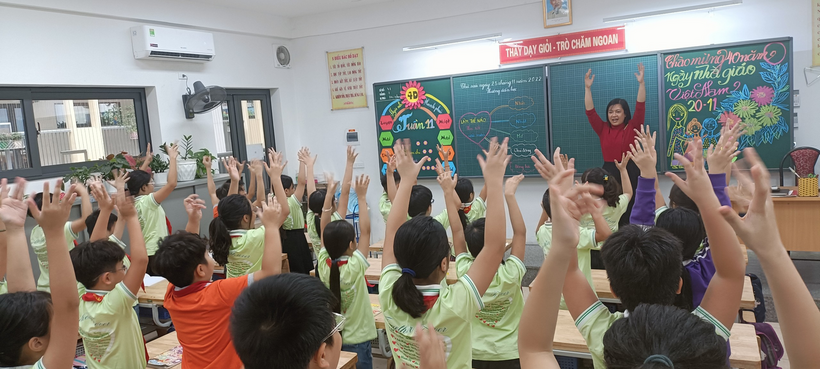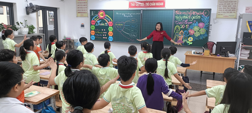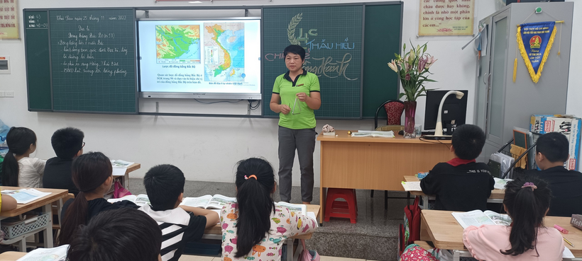 Môn Địa lí lớp 4C , cô giáo Hoàng Uyển Diễm đã lồng ghép bài hát “ Chú tâm” và các hoạt động trò chơi vào bài dạy môn học Địa lí khiến tiết học sôi nổi và đầy hào hứng.
