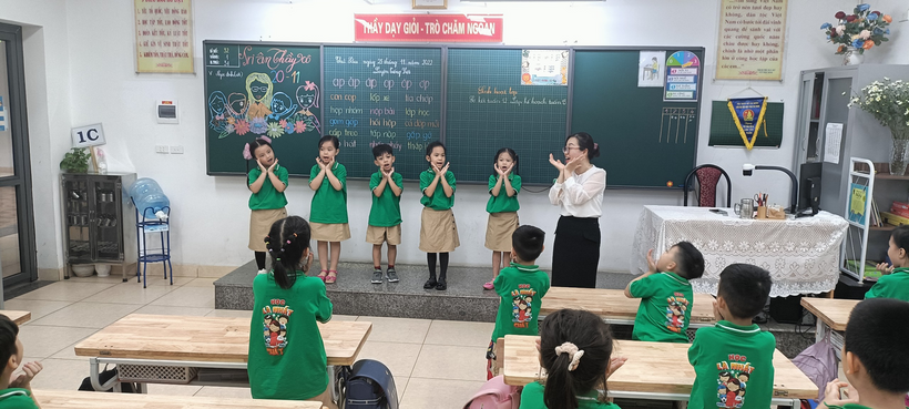 Tiết Sinh hoạt lớp của cô giáo Tăng Thị Thùy Dương – lớp 1C lại diễn ra rất gần gũi và học sinh được tự chủ và tự cảm nhận về bản thân mình qua tiết học. Các con học sinh lớp 1 lần đầu được hát bài “chú tâm”, được nói về điều bản thân thích nhất trong tuần vừa qua, nêu ý kiến về những điều chưa làm tốt và hứa khắc phục ở tuần tới. Kết thúc tiết Sinh hoạt lớp là Trò chơi “ Soi gương”, các con được nêu cảm nhận sau khi chơi và bài hát “ Mẹ và cô” tặng các cô giáo.