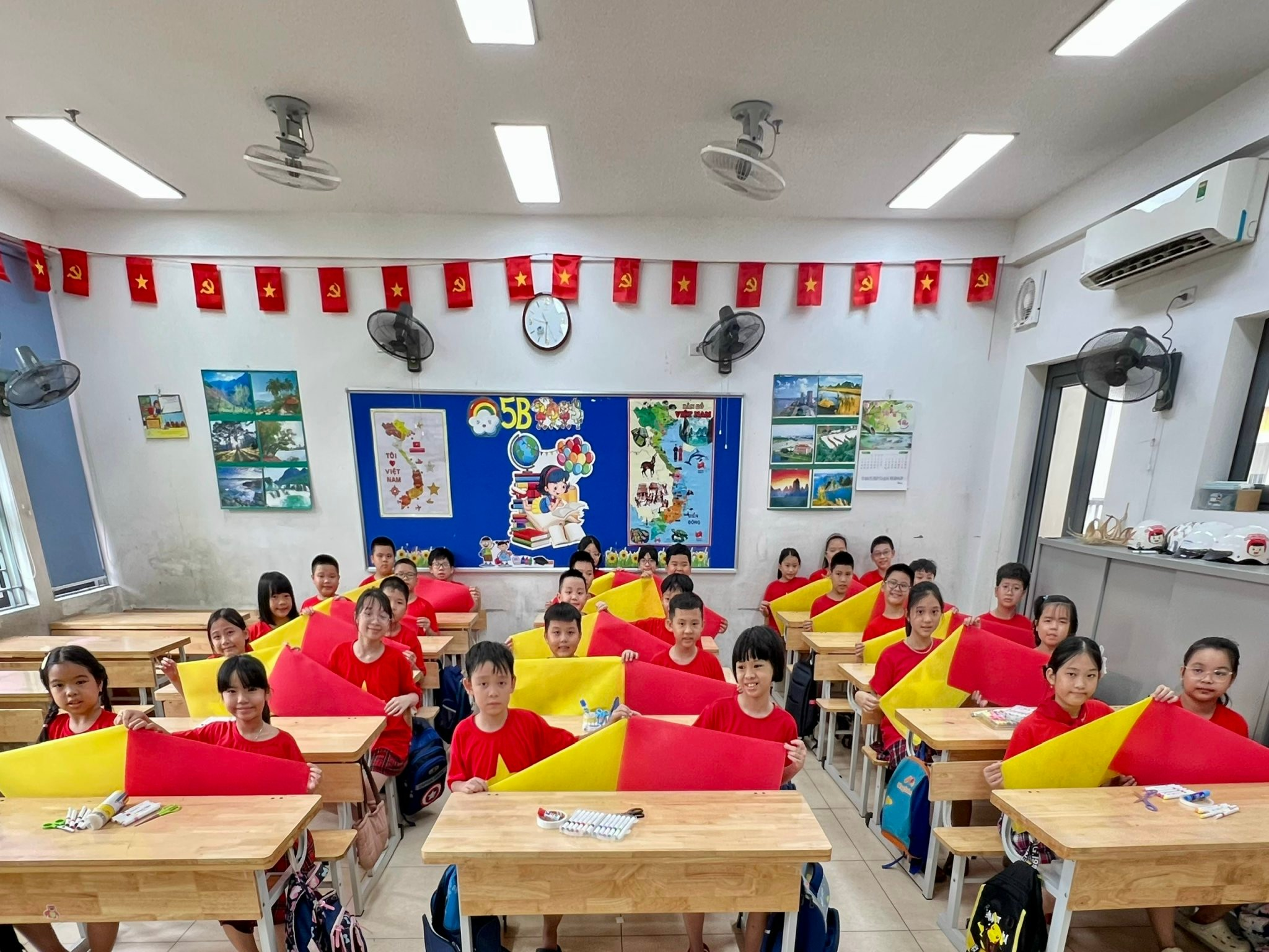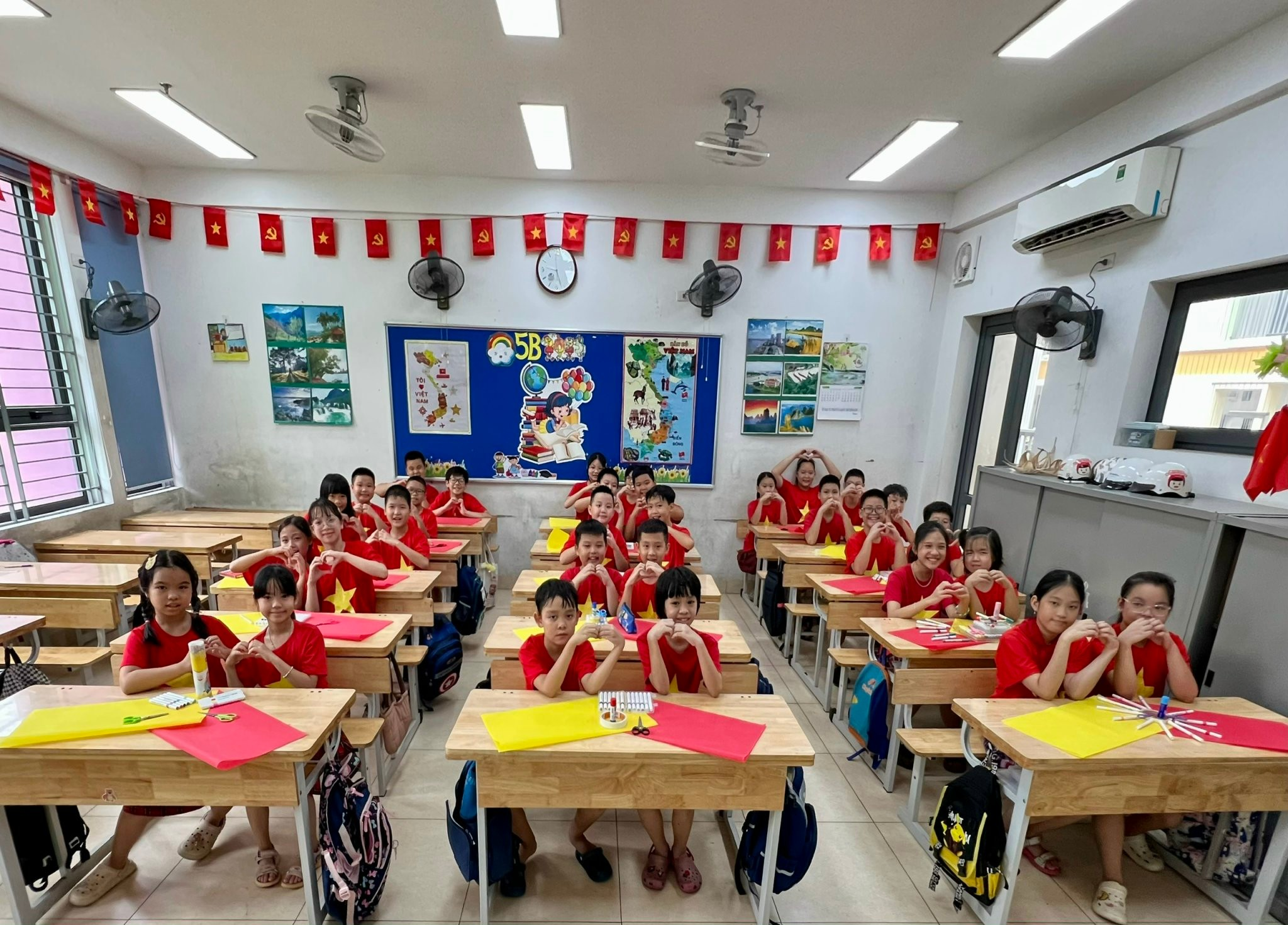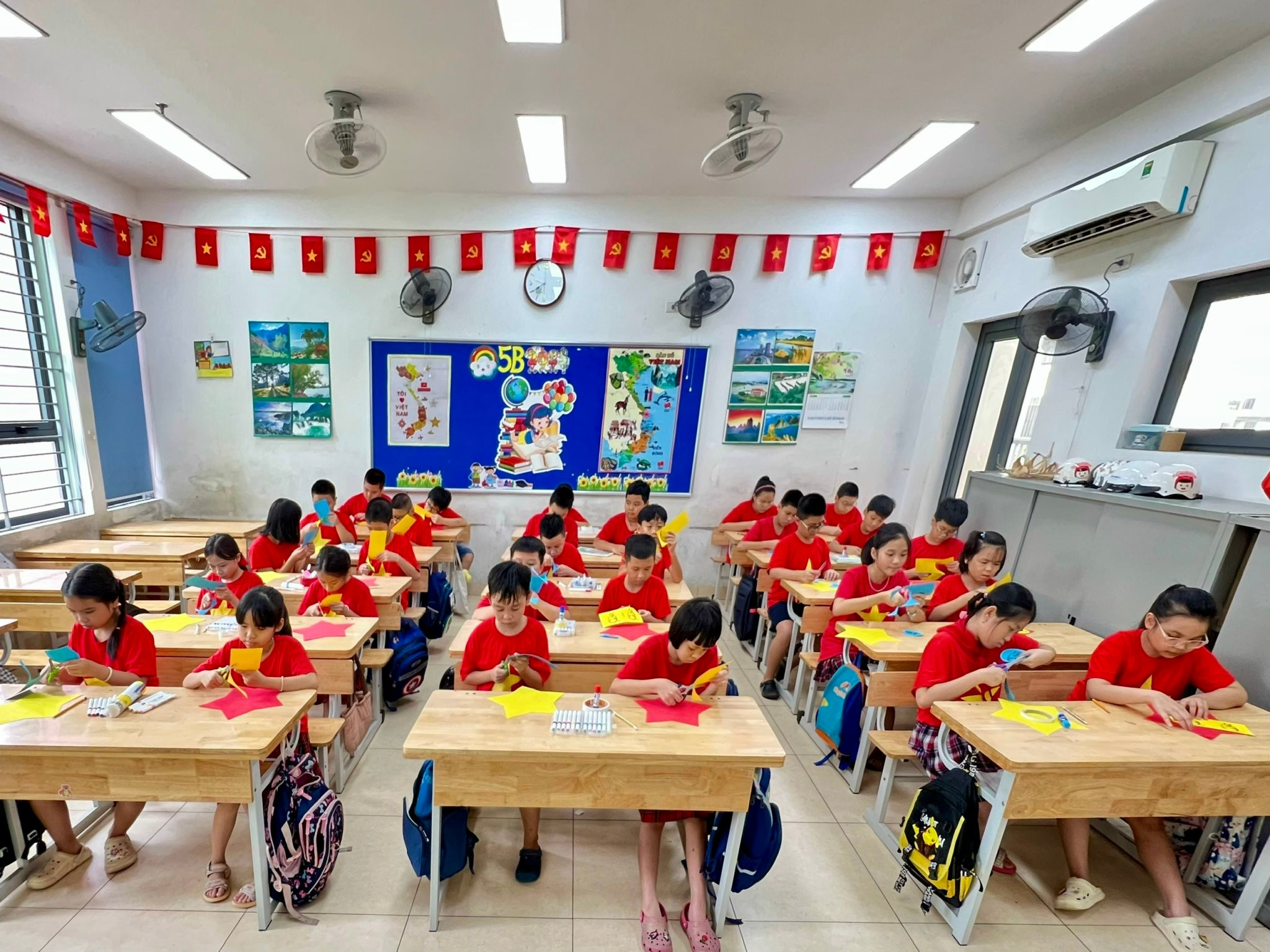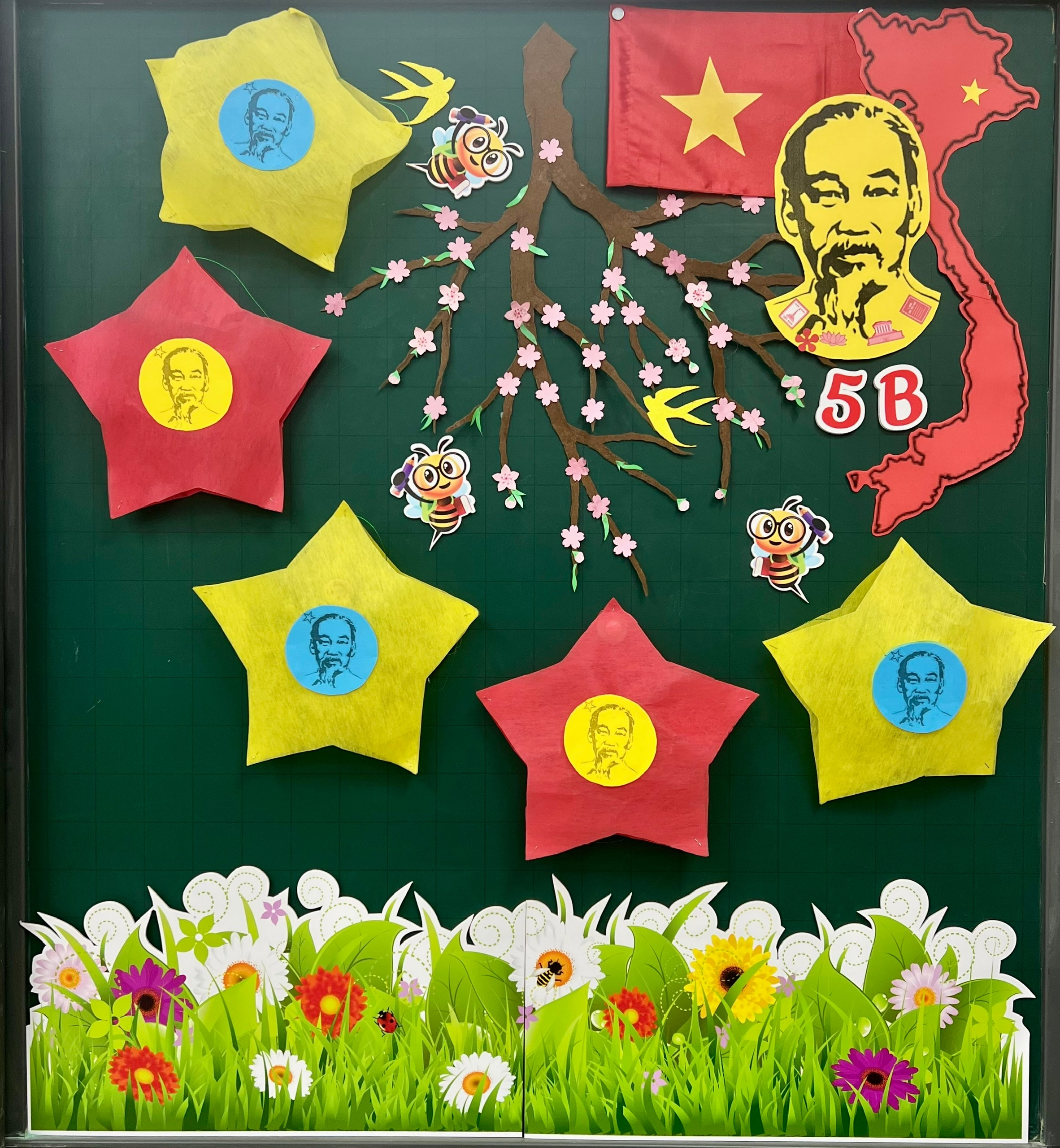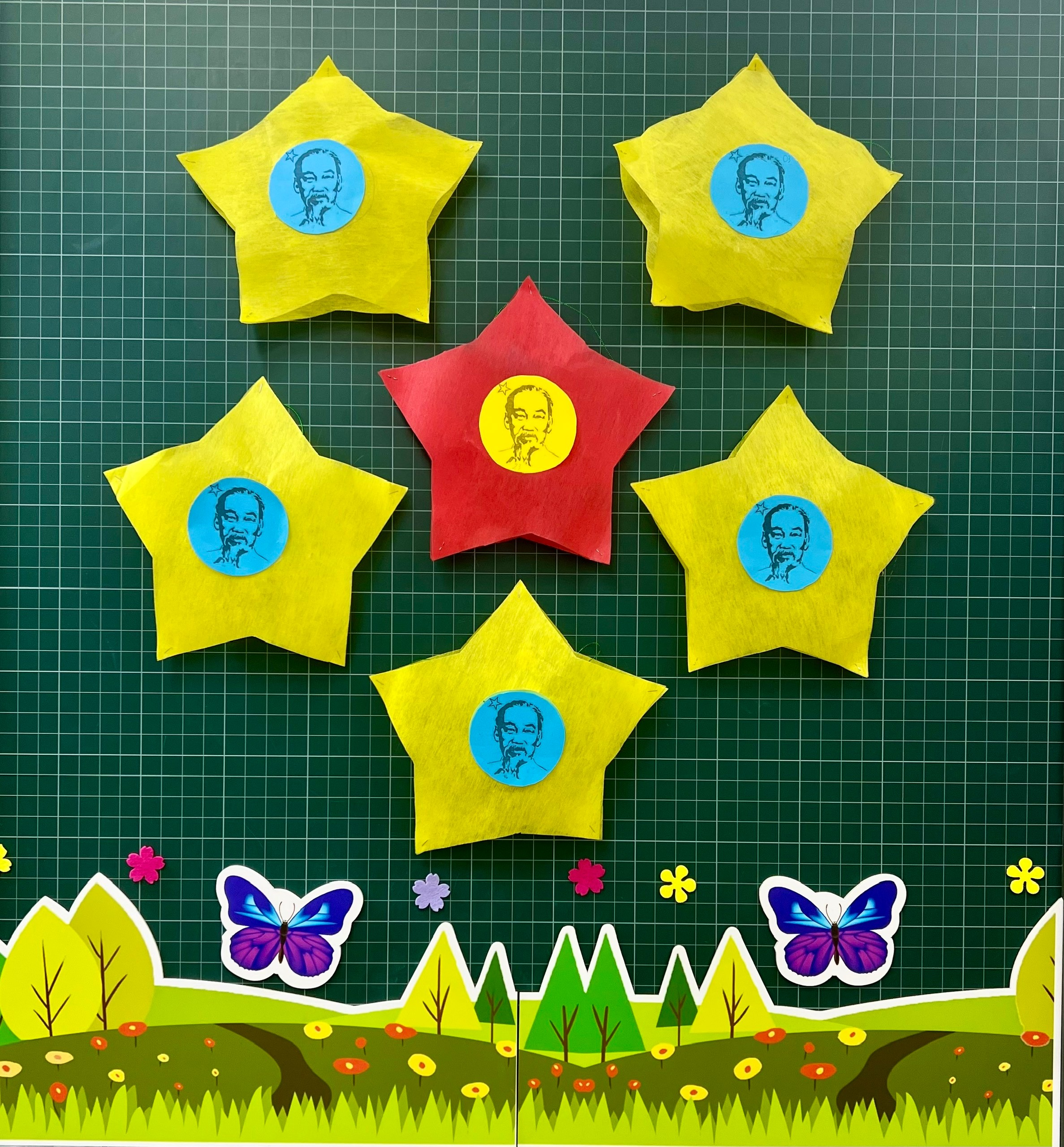Bằng tất cả tình cảm sự, khéo léo và sáng tạo, các em học sinh lớp 5B đã tự tay làm nên những chiếc đèn ông sao rực rỡ, mỗi chiếc đèn đều gắn hình ảnh Bác Hồ kính yêu. Đây không chỉ là hoạt động thủ công mà còn là cách các em thể hiện tình cảm, lòng biết ơn sâu sắc với vị lãnh tụ vĩ đại của dân tộc.