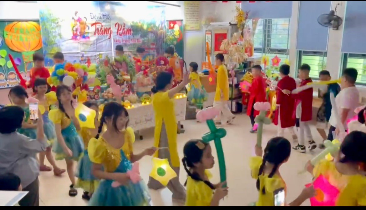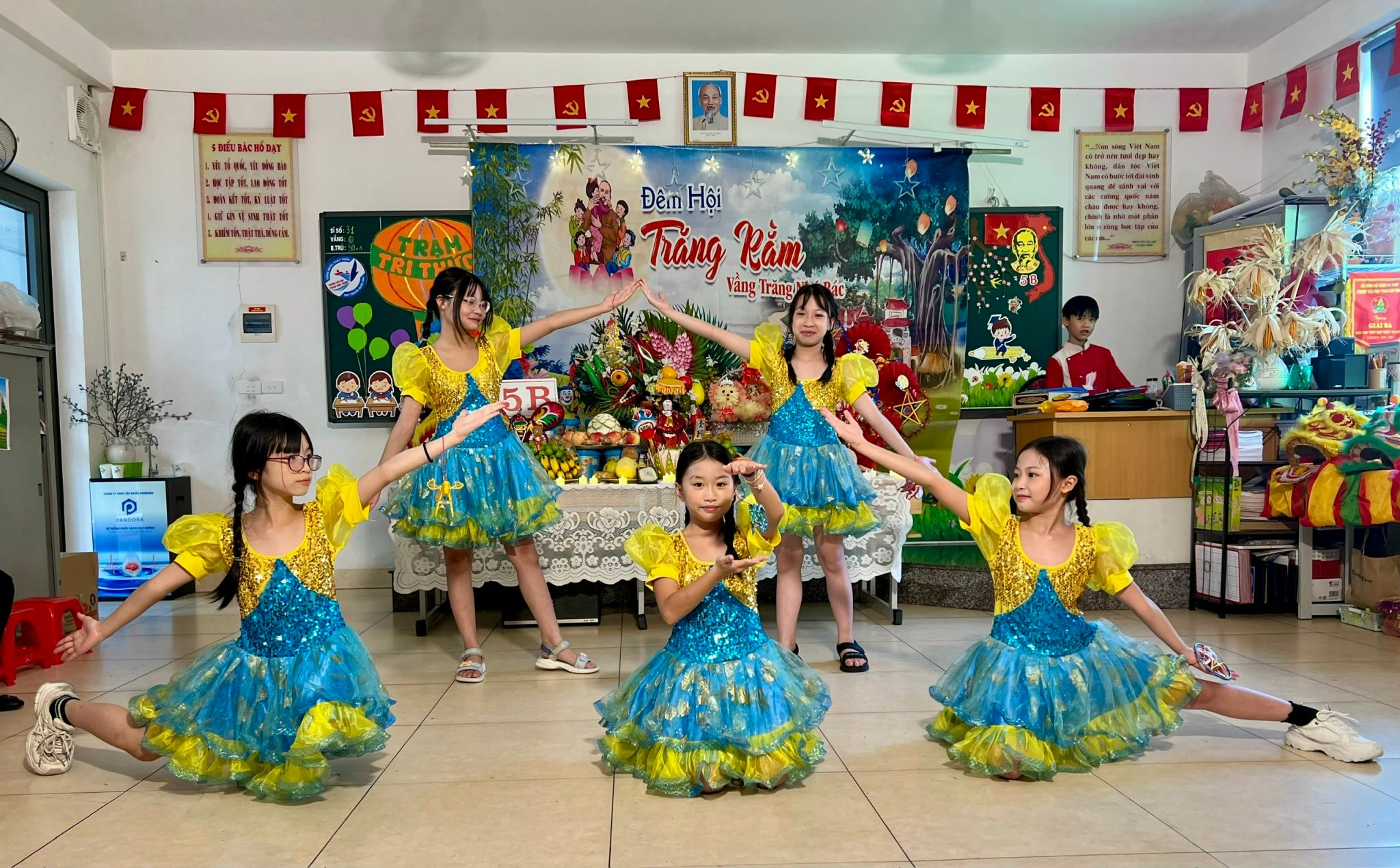 Không thể thiếu trong ngày Trung thu là tiếng trống múa lân rộn rã. Tiết mục múa lân sôi động, đầy sắc màu do các em thể hiện đã mang đến bầu không khí vui tươi, náo nhiệt và đậm đà bản sắc văn hóa dân tộc.