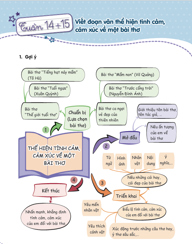 Tớ biết, các bạn học sinh lớp 5 đang loay hoay, không biết làm thế nào để viết được đoạn văn thể hiện tình cảm, cảm xúc về một bài thơ hay thì đây là một mẹo nhỏ giúp bạn đấy. Hãy cùng tớ đến với sơ đồ tư duy tổng hợp cách viết đoạn văn thể hiện tình cảm, cảm xúc về một bài thơ các bạn nhé! Chúc các bạn thành công với dạng bài viết này. Hẹn gặp lại các bạn ở tuần sau.
