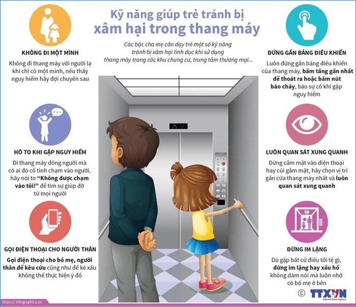 [Infographic] Kỹ năng giúp trẻ tránh bị xâm hại trong thang máy