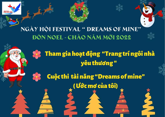 Nhằm tạo sân chơi ngoại khóa giúp các con có không khí rộn ràng đón Noel – Chào năm mới 2022 và  rèn luyện  nâng cao khả năng ngôn ngữ Tiếng Anh. Liên đội tổ chức chùm hoạt động Ngày hội festival “ Dreams of mine” Đón Noel - Chào năm mới 2022 với nội dung, hình thức, thể lệ như sau.
