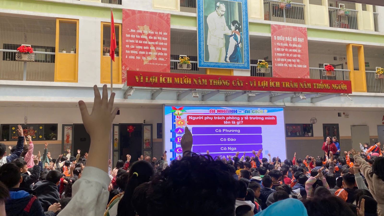 Trong suốt cuộc thi, các em học sinh thể hiện sự hào hứng, mạnh dạn và tinh thần thi đua sôi nổi. Nhiều em nhanh nhẹn giơ tay trả lời, không ngại thử sức với các câu hỏi khó. Tiếng cổ vũ, động viên từ thầy cô và bạn bè đã góp phần làm cho không khí sân trường thêm phần náo nhiệt.