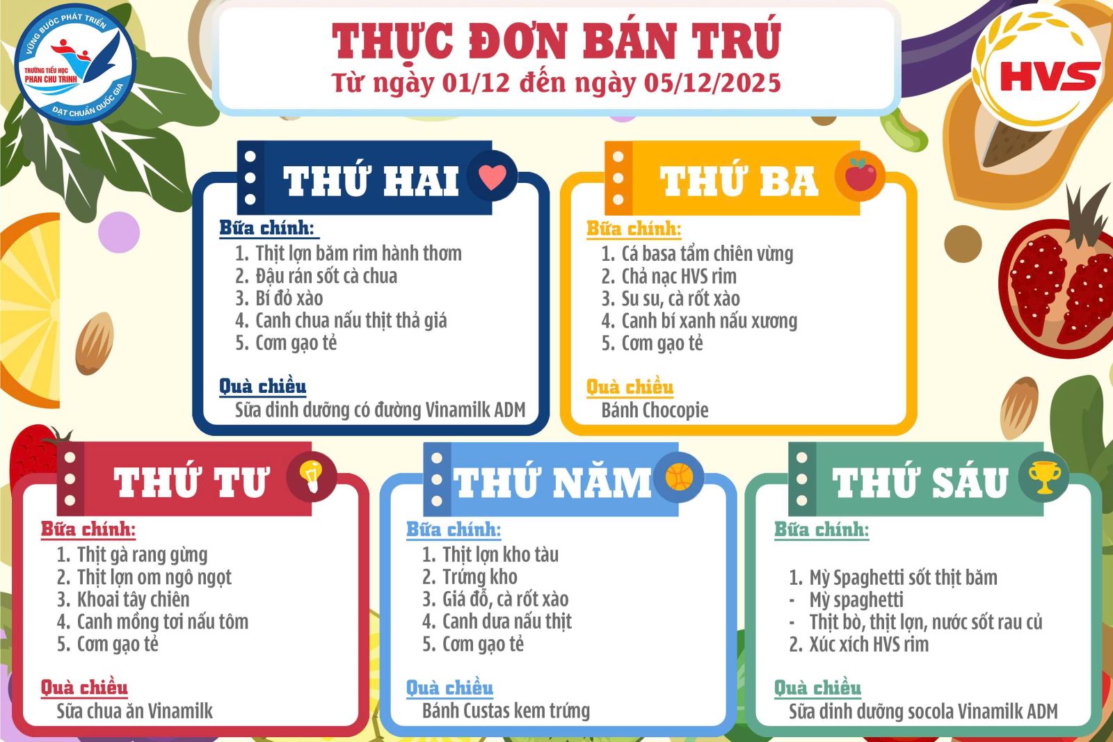 Thực đơn Bán trú tuần 13 năm học 2025 - 2026