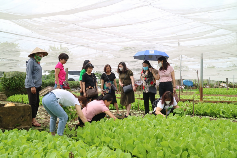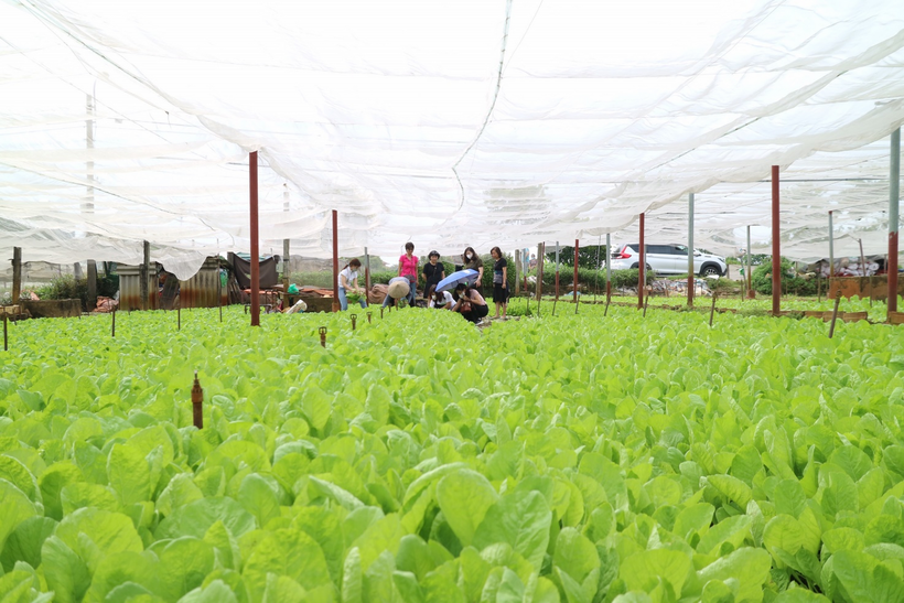 Sau khi làm việc tại trụ sở Hợp tác xã, đoàn đã tới thăm khu trồng rau, trực tiếp chứng kiến việc trồng rau cũng như lắng nghe chia sẻ của bà con nông dân - những người trực tiếp làm ra sản phẩm.