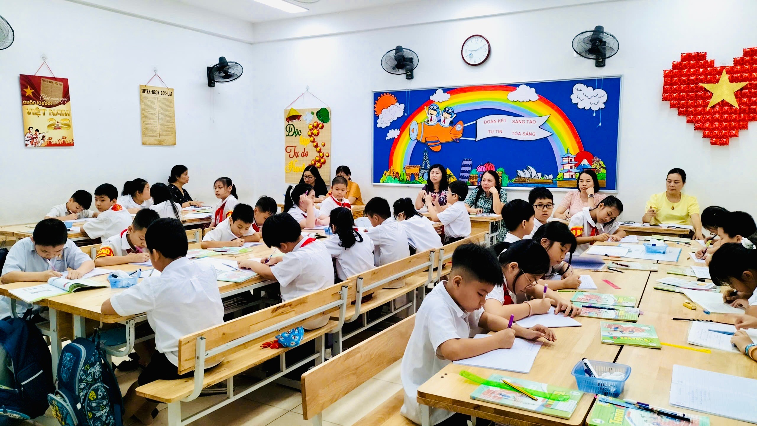 Sau mỗi tiết dạy giáo viên cùng Ban giám hiệu phân tích tỉ mỉ những ưu điểm, những tồn tại trong tiết dạy để đúc rút kinh nghiệm cho bản thân. Những ý kiến đóng góp chân thành, những chỉ đạo, định hướng kịp thời của Ban giám hiệu giúp mỗi giáo viên khối 4 tự tin hơn, vững vàng hơn khi thực hiện chương trình GDPT 2018. Với sự nghiêm túc và hiệu quả cao, các tiết dạy trong phong trào “Hội giảng – Hội học” đã được Ban giám hiệu và các giáo viên trong trường đánh giá rất cao. Đó chính là nền tảng để nâng dần chất lượng đại trà và mũi nhọn của trường trong hoạt động dạy và học.