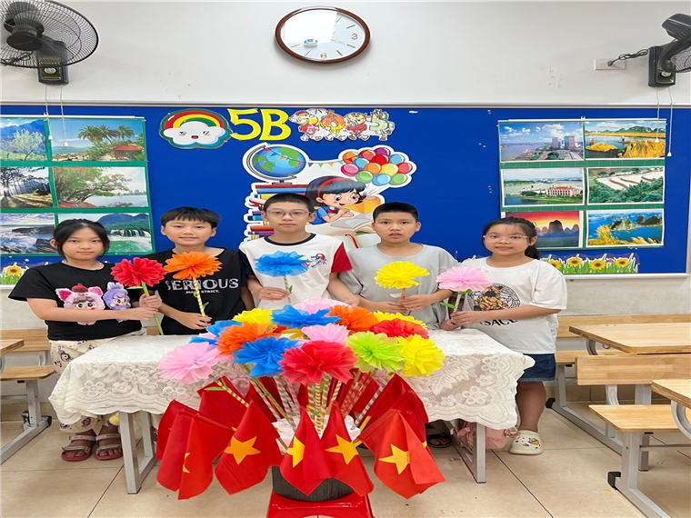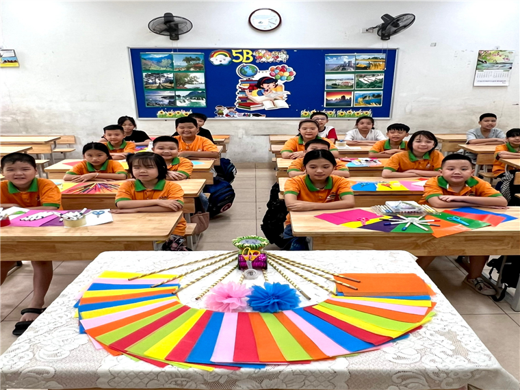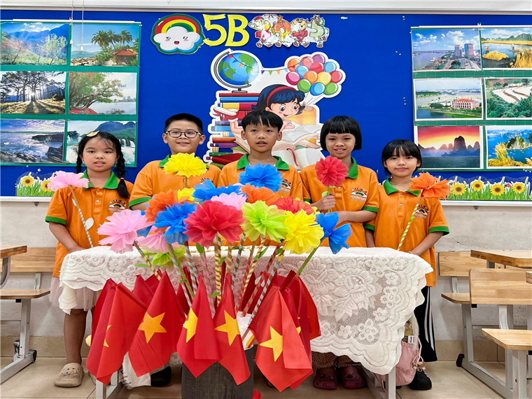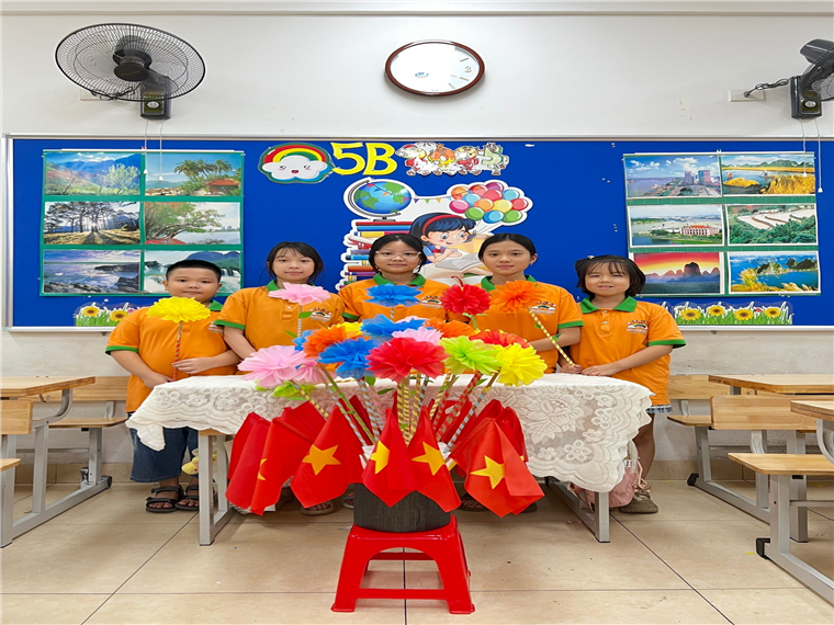 Để chuẩn bị cho ngày lễ trọng đại ấy, cô và trò lớp 5B đã tất bật lên kế hoạch từ sớm. Những tờ giấy màu, cuộn dây ruy băng, kéo, hồ dán… được bày gọn gàng trên bàn. Dưới bàn tay khéo léo của các bạn nhỏ và sự hướng dẫn tận tình của cô, từng cánh hoa giấy dần dần nở rộ. Mỗi bông hoa là một niềm vui, một ước mơ gửi gắm cho một năm học nhiều thành công.