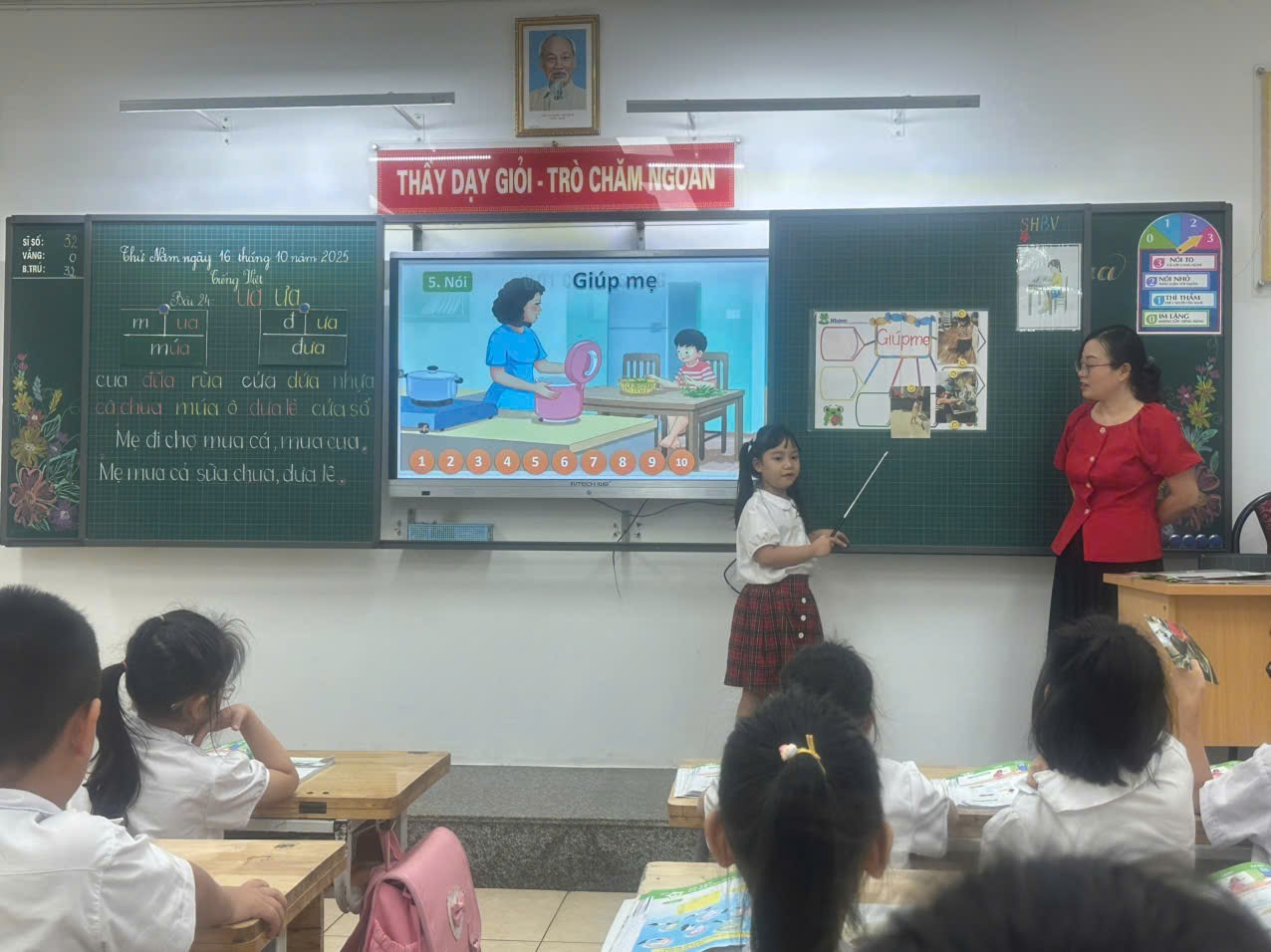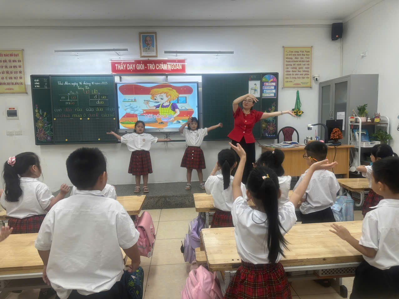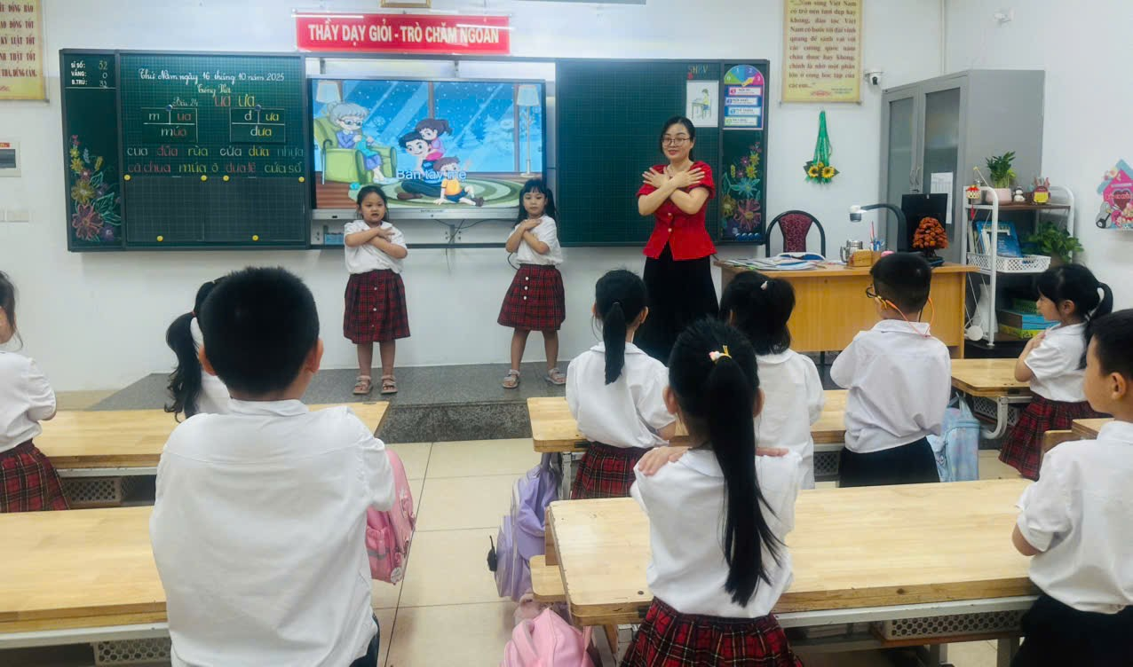 Trong tiết dạy của cô giáo Thùy Dương, lớp học như một sân khấu nhỏ đầy niềm vui. Với cách tổ chức linh hoạt, phương pháp dạy học tích cực, cô giáo giúp học sinh lớp 1C hứng khởi tham gia từng hoạt động: thảo luận nhóm, đọc diễn cảm, luyện viết đẹp và giao tiếp tự tin.