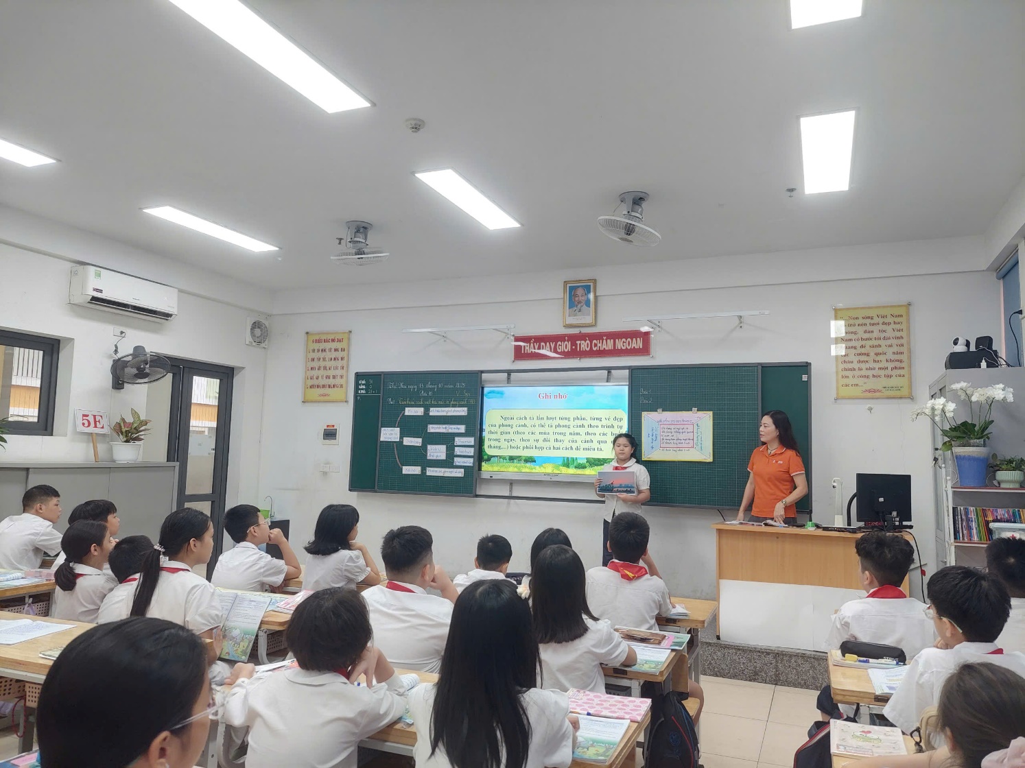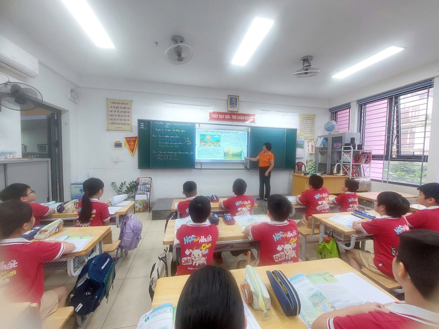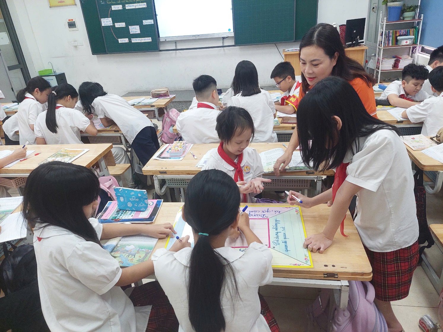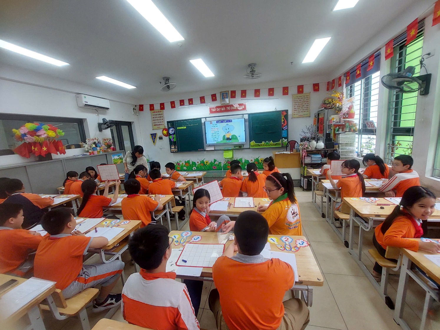Trong từng tiết học, giáo viên khối 5 đã vận dụng linh hoạt các phương pháp dạy học tích cực như: học theo nhóm, thảo luận, trò chơi học tập, dạy học theo dự án, mô hình lớp học đảo ngược… Bên cạnh đó, việc ứng dụng công nghệ thông tin và các công cụ trực quan sinh động đã khiến giờ học trở nên hấp dẫn, khơi gợi hứng thú học tập nơi học sinh. Ở tiết Toán, các em được khám phá kiến thức thông qua những trò chơi vận dụng thực tế; trong giờ Tiếng Việt, học sinh được hóa thân vào nhân vật, chia sẻ cảm nhận, rèn luyện khả năng diễn đạt và giao tiếp.