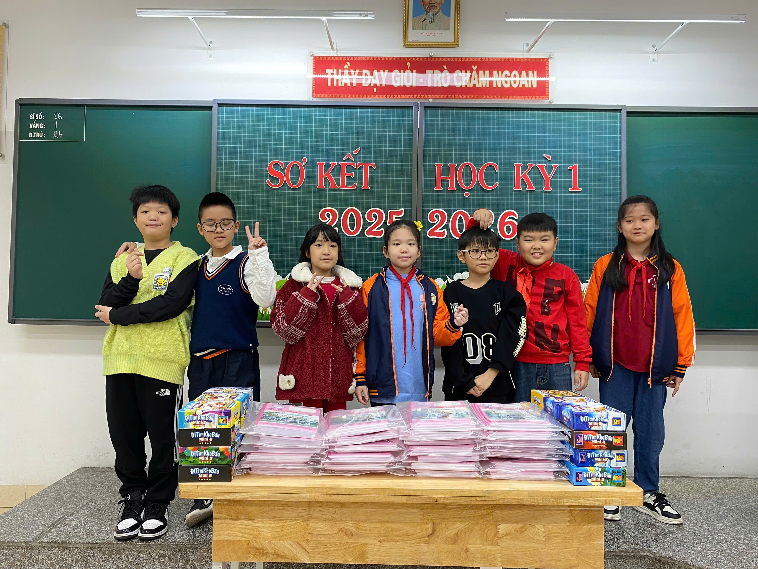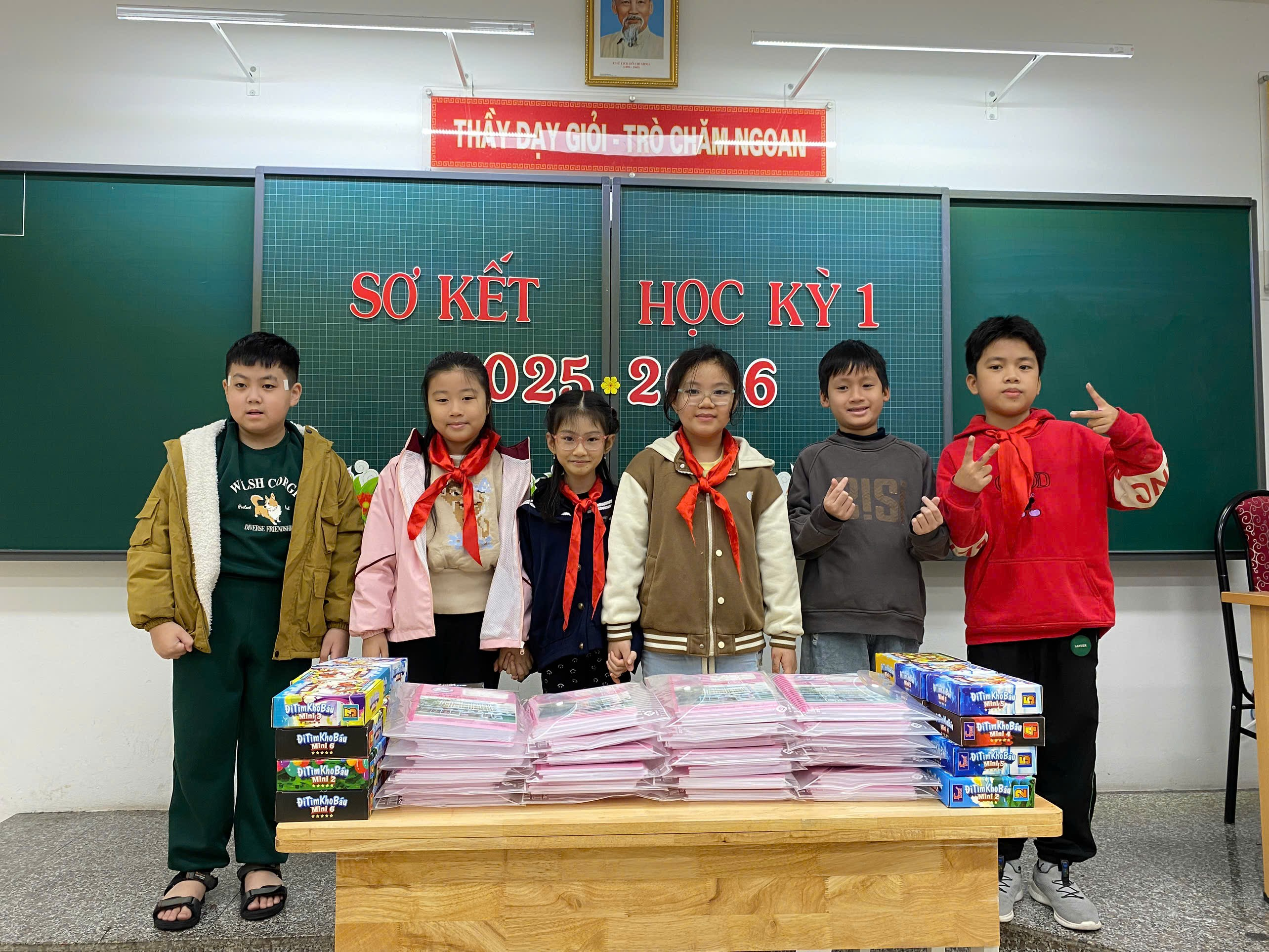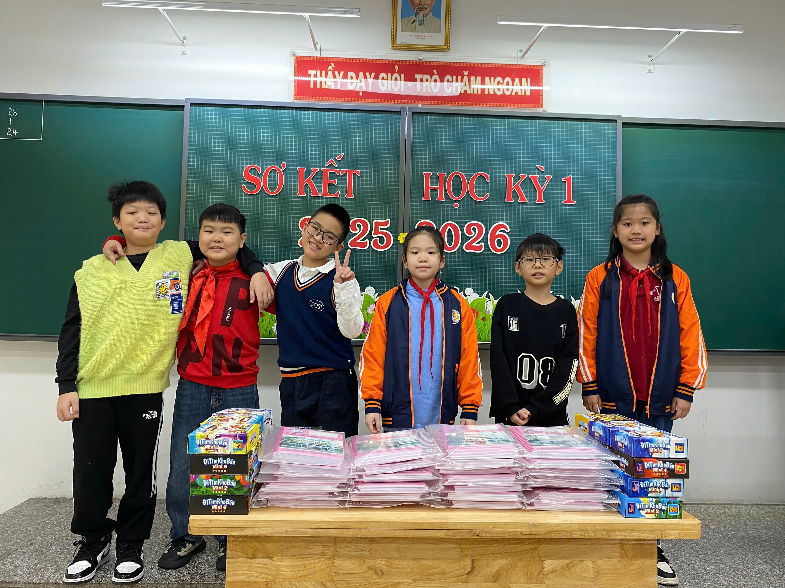 Trong buổi sơ kết, cô giáo chủ nhiệm đã biểu dương, khen thưởng kịp thời các cá nhân và tập thể có thành tích nổi bật, đồng thời nhẹ nhàng nhắc nhở, động viên những em còn hạn chế để các em có thêm quyết tâm phấn đấu trong học kỳ II. Những lời nhận xét chân thành, gần gũi đã giúp học sinh hiểu rõ hơn ưu điểm của bản thân và xác định mục tiêu rèn luyện trong thời gian tới.