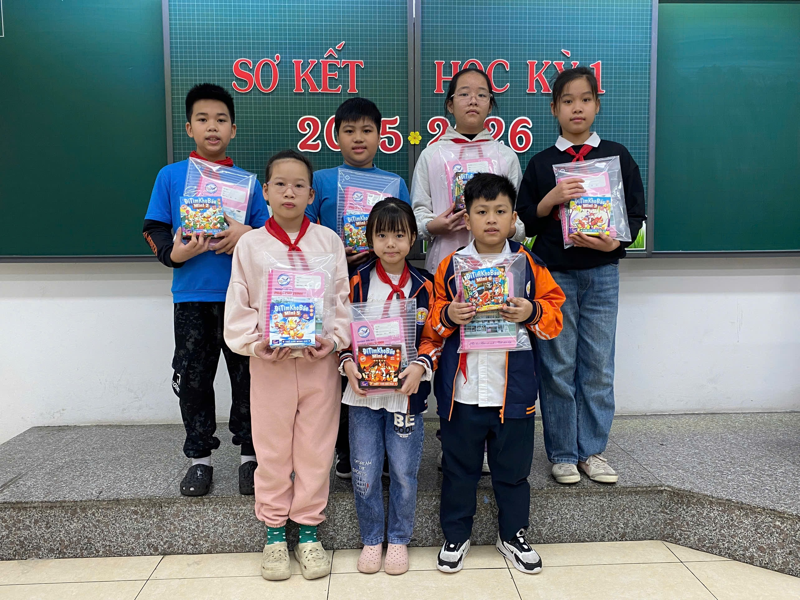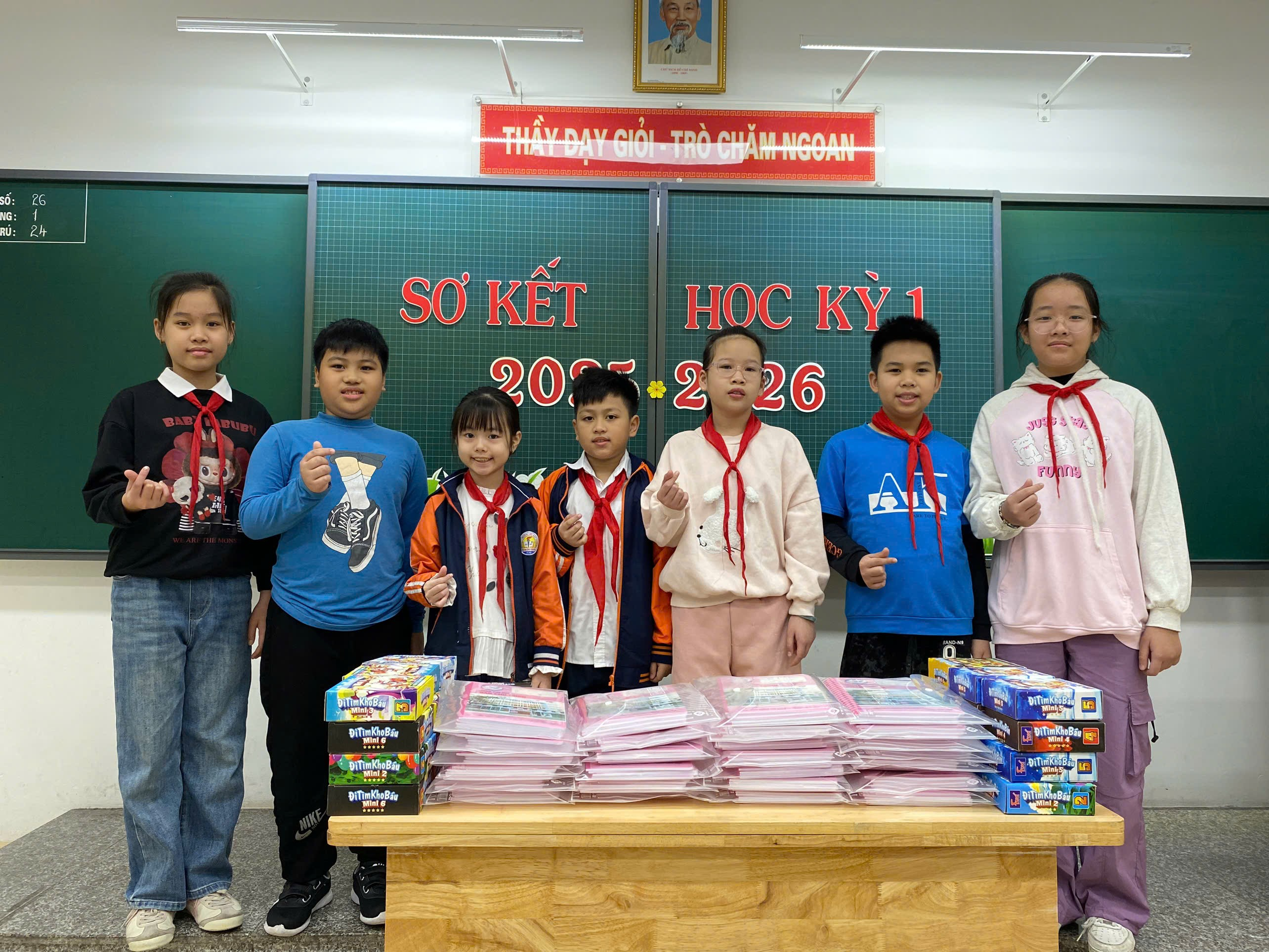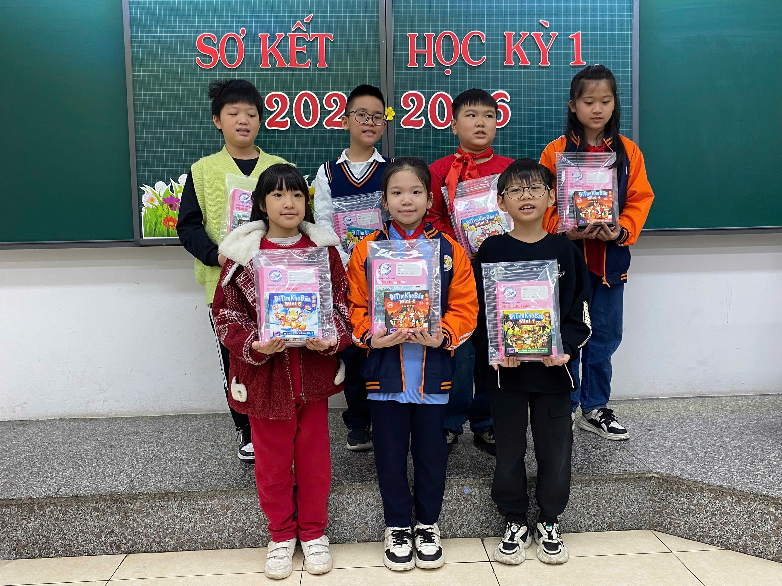 Trong buổi sơ kết, cô giáo chủ nhiệm đã biểu dương, khen thưởng kịp thời các cá nhân và tập thể có thành tích nổi bật, đồng thời nhẹ nhàng nhắc nhở, động viên những em còn hạn chế để các em có thêm quyết tâm phấn đấu trong học kỳ II. Những lời nhận xét chân thành, gần gũi đã giúp học sinh hiểu rõ hơn ưu điểm của bản thân và xác định mục tiêu rèn luyện trong thời gian tới.