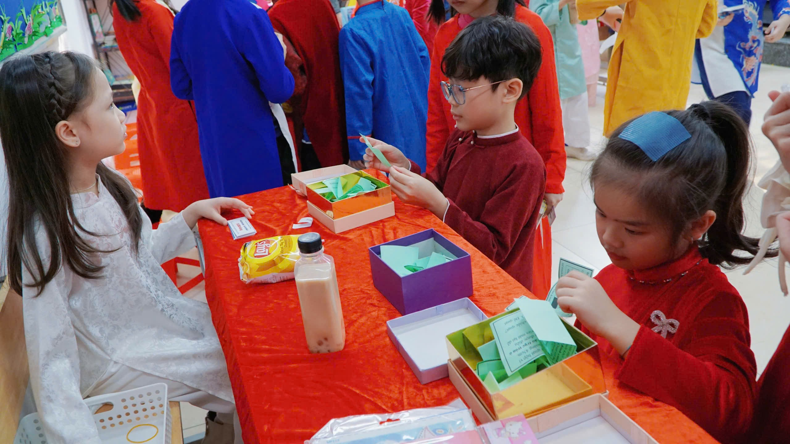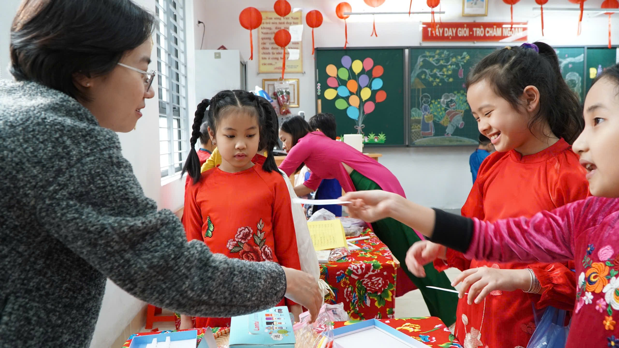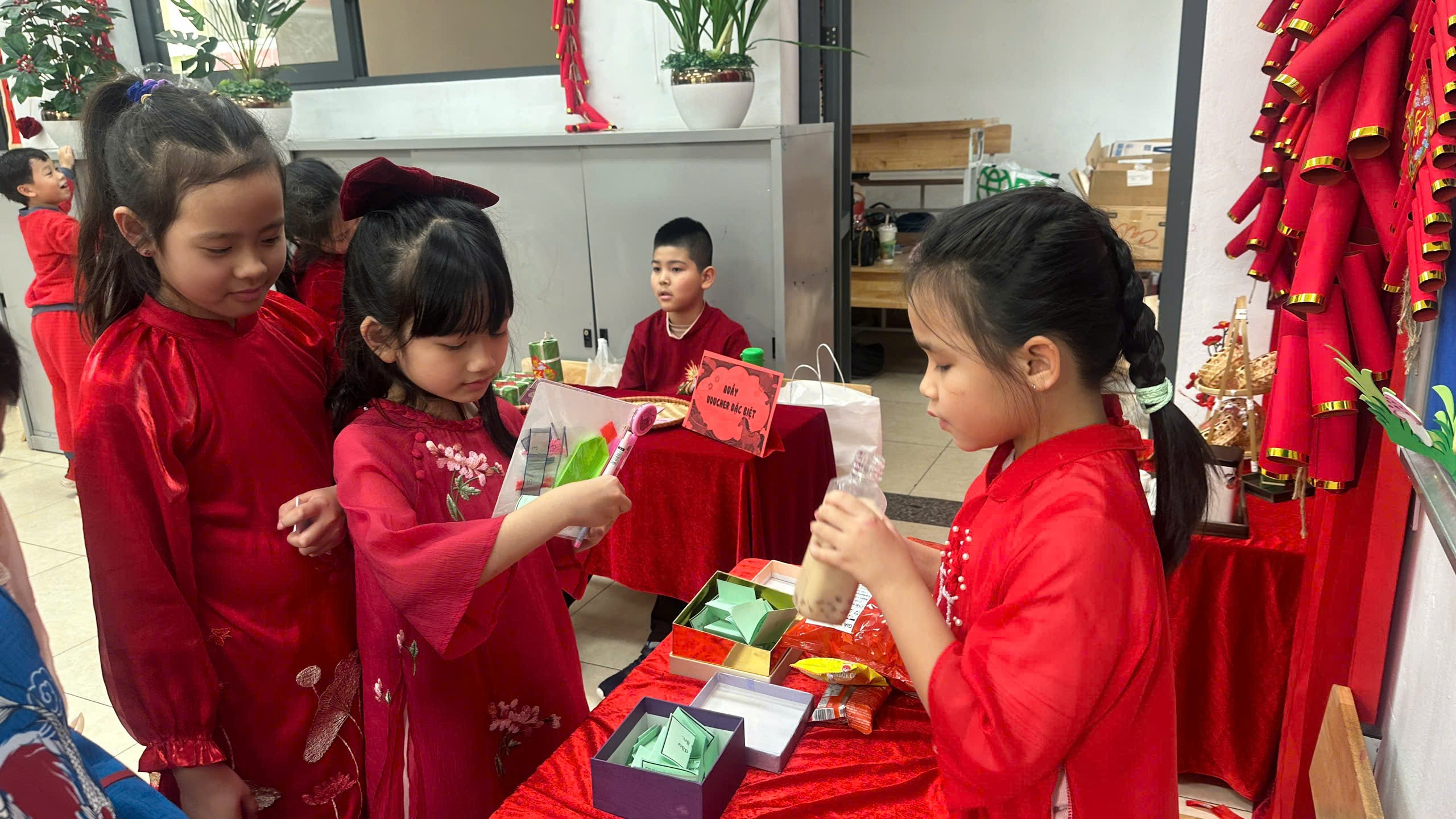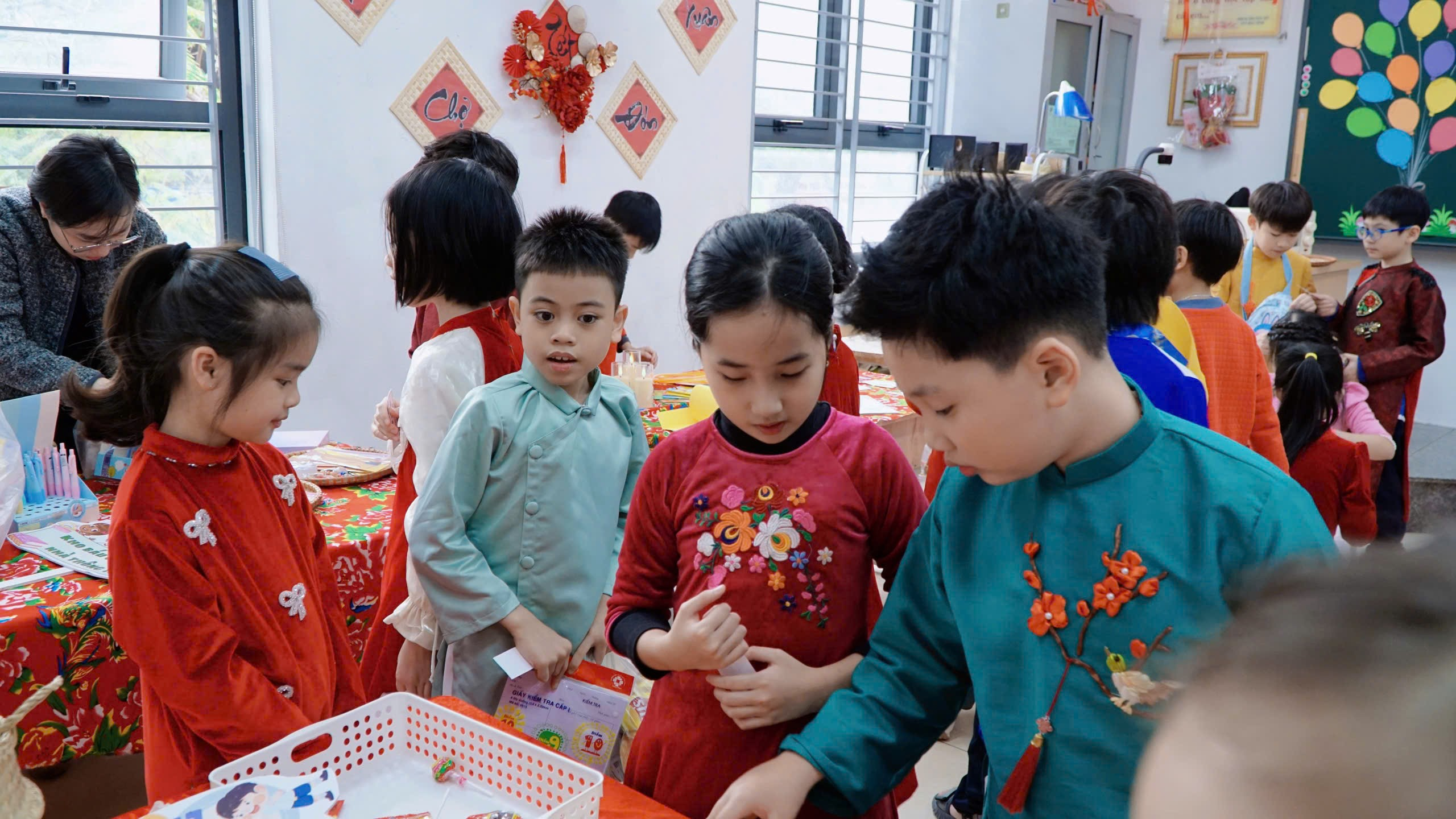 Hội chợ Xuân năm nay của lớp 3C được tổ chức với một ý nghĩa đặc biệt: Tổng kết phong trào thi đua Học kỳ 1. Hội chợ xuân đặc biệt này không chỉ là sân chơi giải trí mà còn là dịp để các con thu hoạch "quả ngọt" sau một học kỳ nỗ lực rèn luyện.