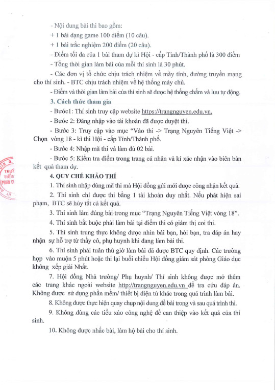 Thông báo lịch mở các vòng thi sân chơi Trạng Nguyên Tiếng Việt trên Internet năm học 2024-2025
