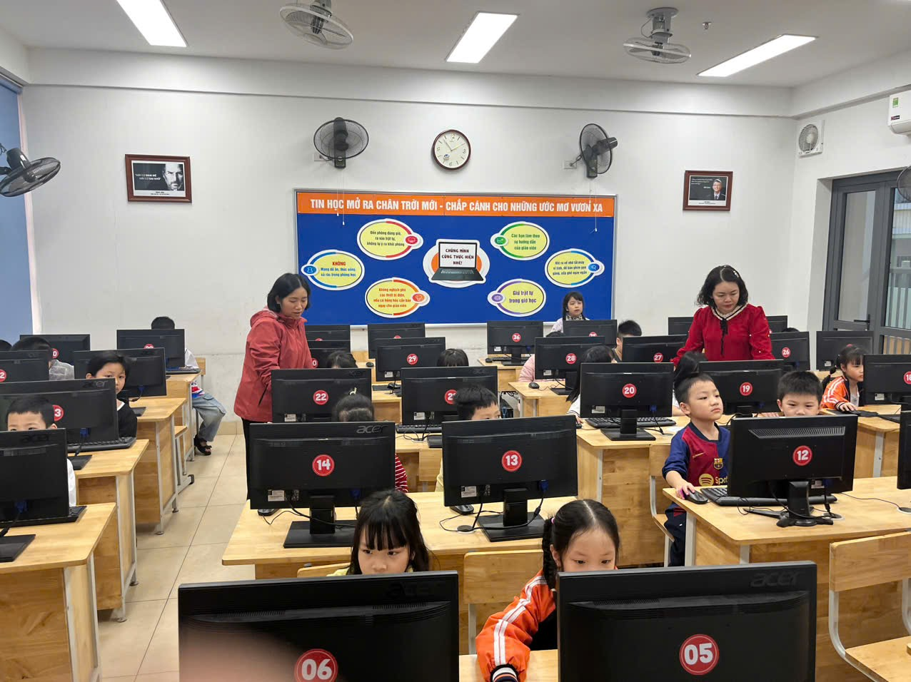 Bên cạnh đó, nhà trường cũng đã chỉ đạo, phân công nhiệm vụ giáo viên trông thi, giám sát, phối hợp tổ chức các ca thi theo kế hoạch. Đặc biệt, Ban giám hiệu cũng đã trực tiếp kiểm tra CSVC, đường truyền Internet trong phòng Tin học để đảm bảo cuộc thi diễn ra an toàn, nghiêm túc và thành công tốt đẹp.