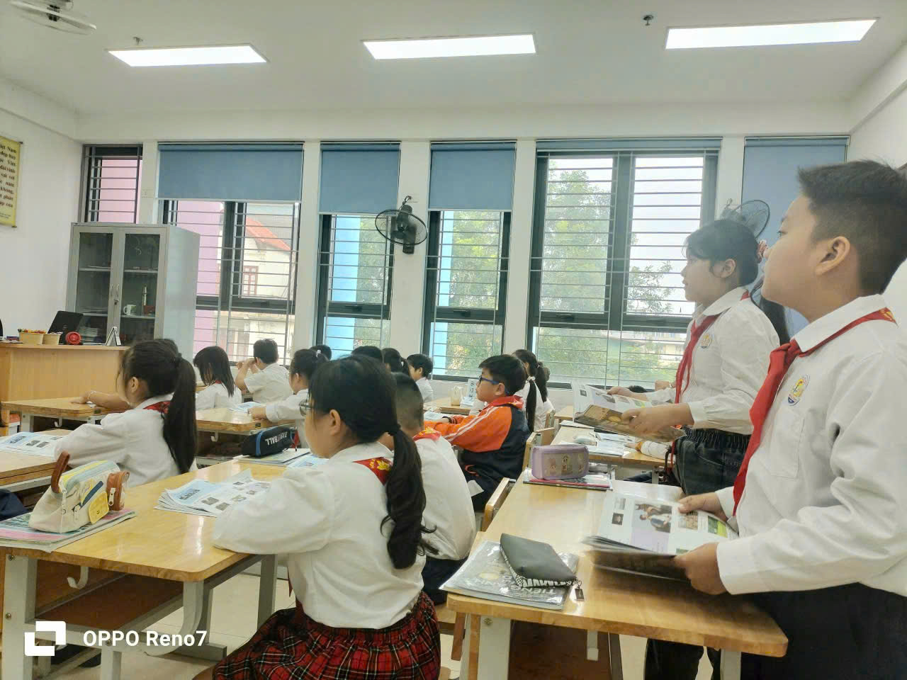 Đến với tiết dạy của cô giáo Đoàn Hồng Giang, cô đã có một tiết dạy sáng tạo, hấp dẫn trong bài Unit 4: Free time – Lesson 1. Mở đầu tiết học là bài hát “Hobbies song” với giai điệu vui nhộn và thư giãn, các em học sinh lớp 5D đã vô cùng hào hứng nhảy và hát theo nhạc. Tiết dạy được cô lồng ghép khéo léo với những hoạt động đa dạng, cho các em làm quen các cụm từ về sở thích khác nhau thông qua các hoạt động nhận biết, trò chơi vui nhộn với phương châm “học mà chơi, chơi mà học” để rèn luyện kỹ năng nghe, nói, đọc và trả lời câu hỏi, khiến cho các em vô cùng hứng thú, hăng say phát biểu, tham gia vào hoạt động một cách sôi nổi tích cực.