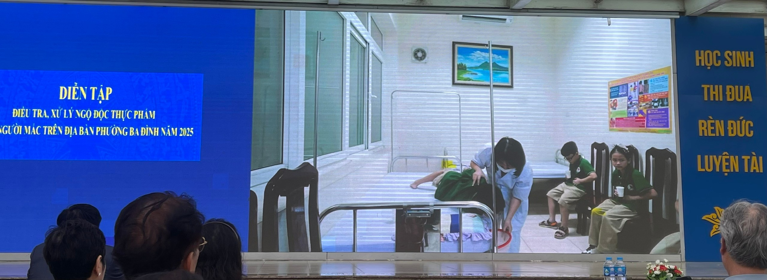 Trong tình huống giả định xảy ra ngộ độc thực phẩm tại trường học, các lực lượng đã phối hợp chặt chẽ, triển khai đồng bộ các biện pháp điều tra, khoanh vùng, xử lý, cấp cứu và tuyên truyền về an toàn thực phẩm, nhằm đảm bảo sức khỏe cho học sinh và cộng đồng.