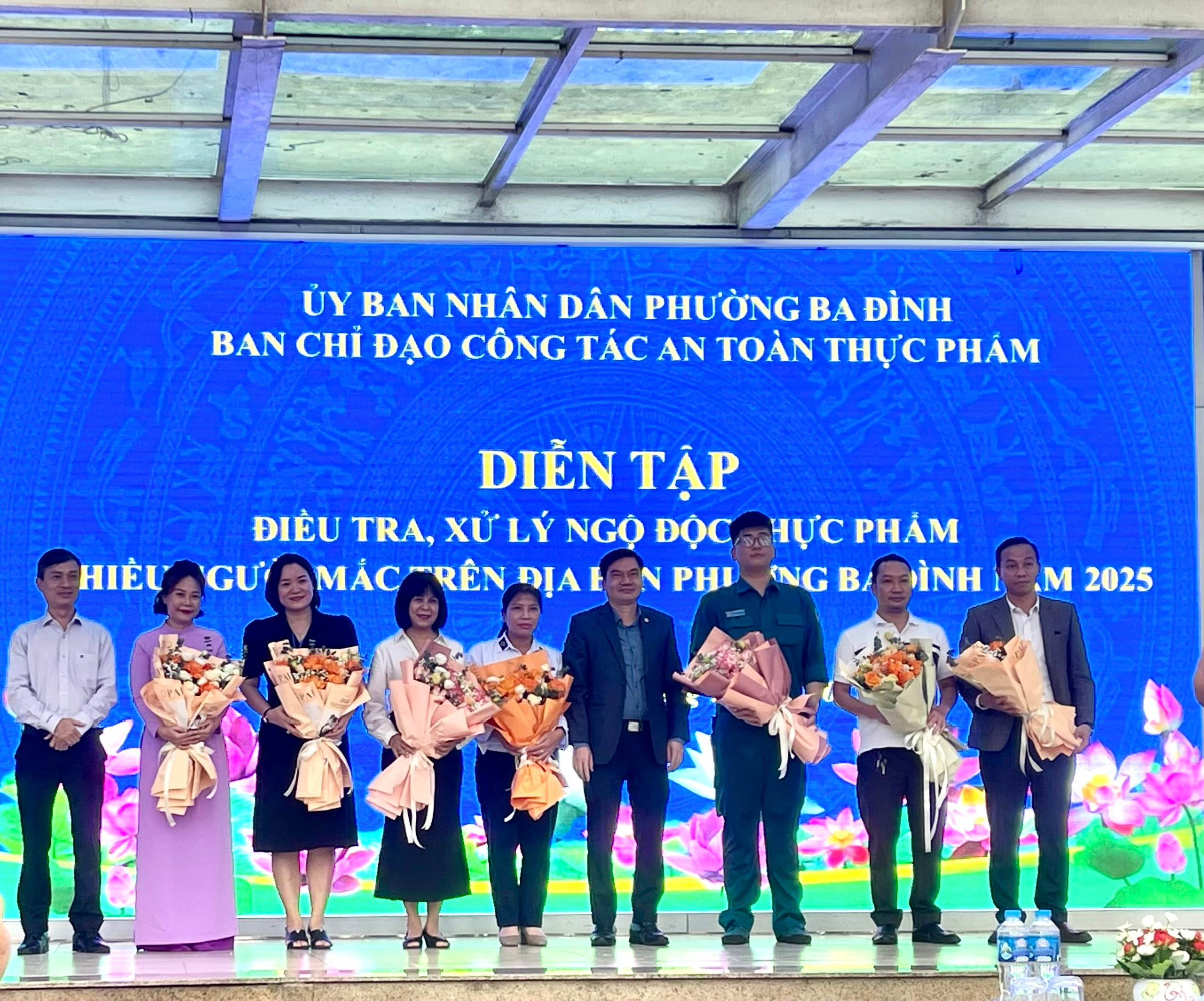 Buổi diễn tập có sự hiện diện của lãnh đạo UBND phường, các ban, ngành, đoàn thể, Trạm Y tế, Đội Quản lý thị trường số 3, Chăn nuôi thú y, cùng đại diện Ban Giám hiệu, nhân viên y tế và ban phụ huynh các trường học.