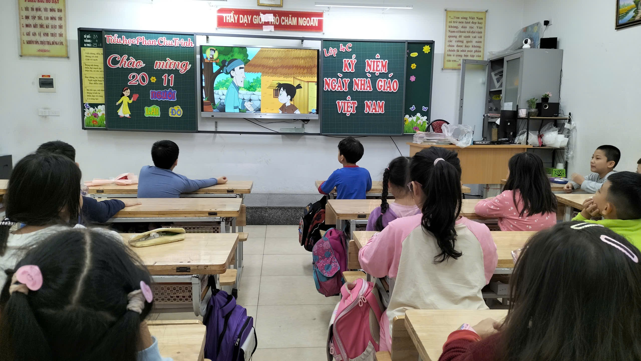 Mở đầu buổi sinh hoạt, các em học sinh được xem video về lịch sử ra đời ngày Nhà giáo Việt Nam và video về thầy giáo Chu Văn An – người thầy mẫu mực, suốt đời tận tâm vì việc dạy dỗ học trò. Qua những hình ảnh chân thực và cảm động, các em hiểu được truyền thống Tôn sư trọng đạo của dân tộc ta, biết trân trọng công lao của những người làm nghề dạy học. Nhiều bạn nhỏ đã bày tỏ sự xúc động và niềm tự hào khi biết 20/11 không chỉ là một ngày lễ, mà còn là dịp để học trò cả nước gửi lời tri ân đến thầy cô.