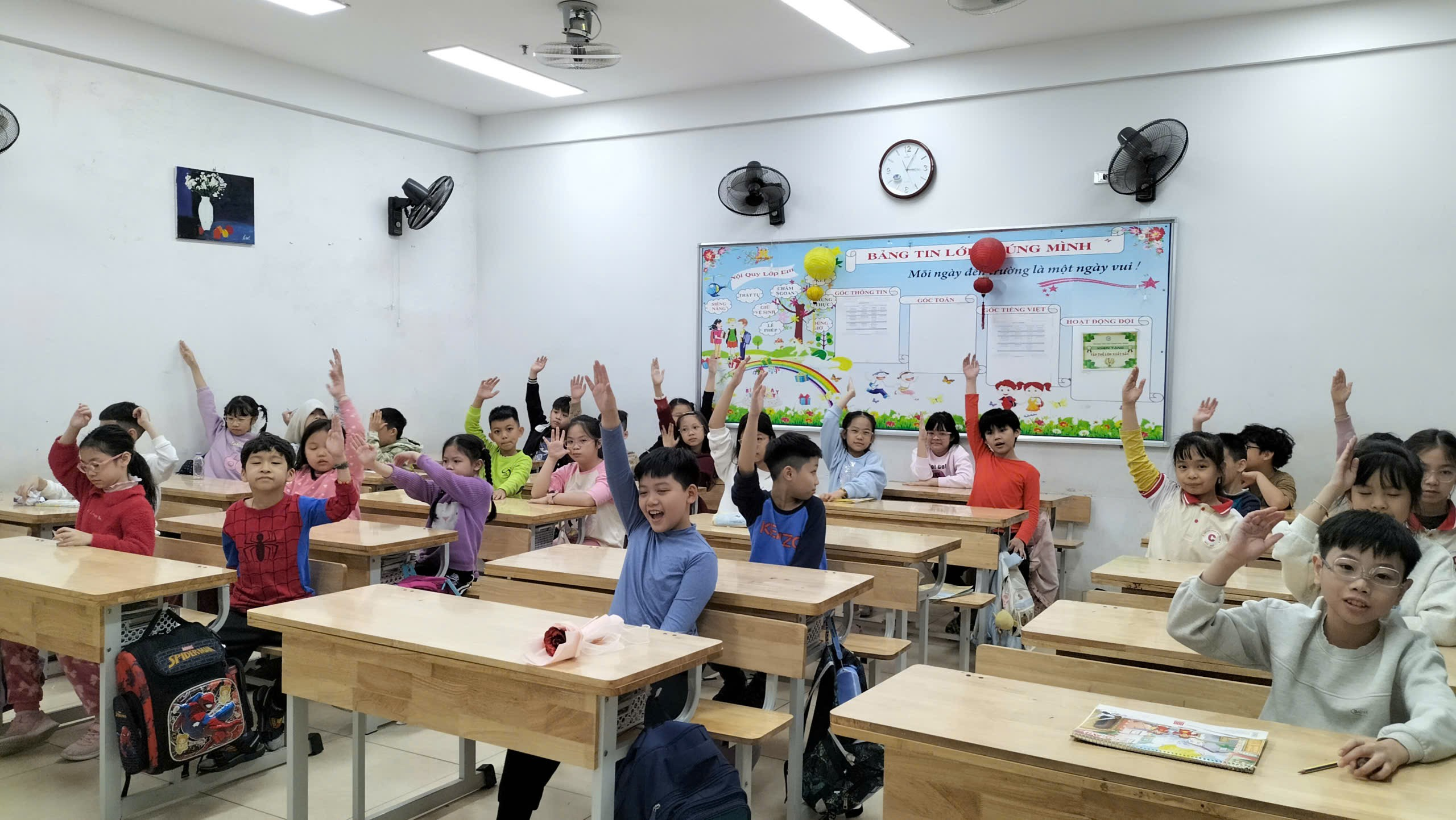Không chỉ học kiến thức, các em còn được thể hiện tình cảm của mình qua hoạt động làm bưu thiếp chúc mừng thầy cô. Từng tấm thiệp với lời chúc ngây thơ, trong sáng, từng nét vẽ đầy màu sắc đều chứa đựng tình yêu, sự kính trọng và biết ơn. Có bạn tỉ mỉ viết lời cảm ơn, có bạn say sưa vẽ hình ảnh cô giáo đang dạy bài, tất cả đều thể hiện tấm lòng chân thành của học trò dành cho thầy cô.
