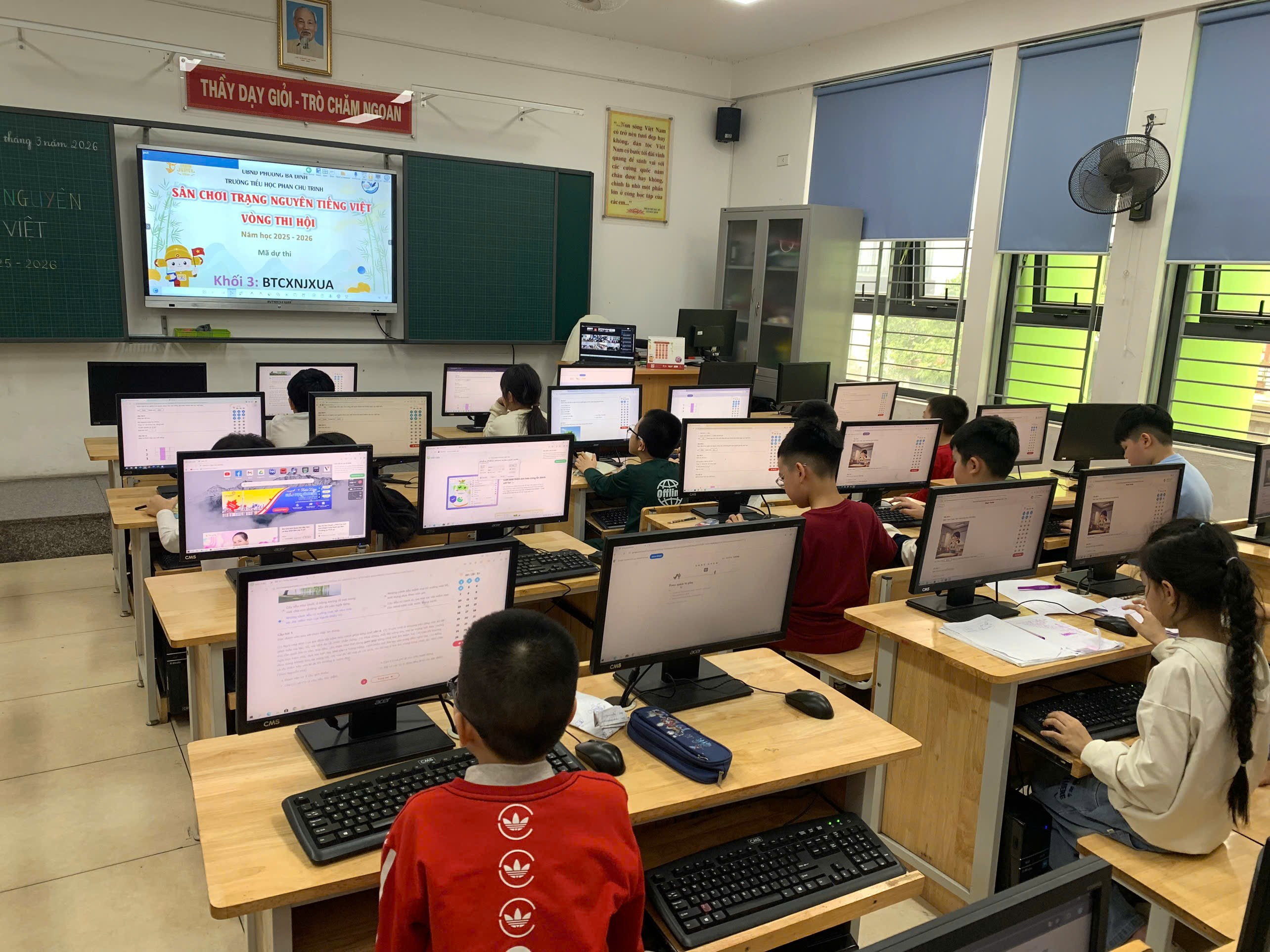 Ngày 11/03/2026, 81 học sinh khối lớp 1,2,3 trường Tiểu học Phan Chu Trinh đã bước vào cuộc thi “Trạng Nguyên Tiếng Việt” cấp Thành phố tại phòng Tin học của trường với tâm lý thoải mái, tự tin nhất. Một số học sinh gặp sự cố như không nhớ tài khoản, mật khẩu đều được Hội đồng coi thi hỗ trợ, tạo điều kiện để các em bình tĩnh tham gia kỳ thi.