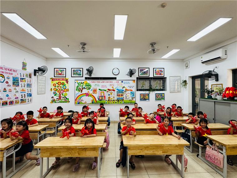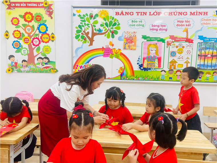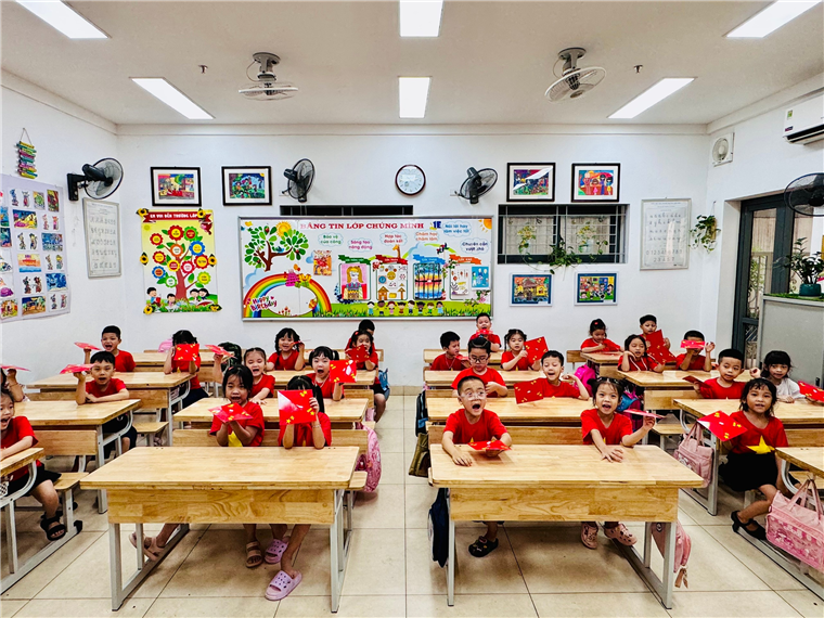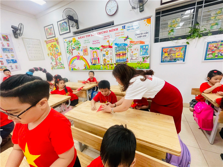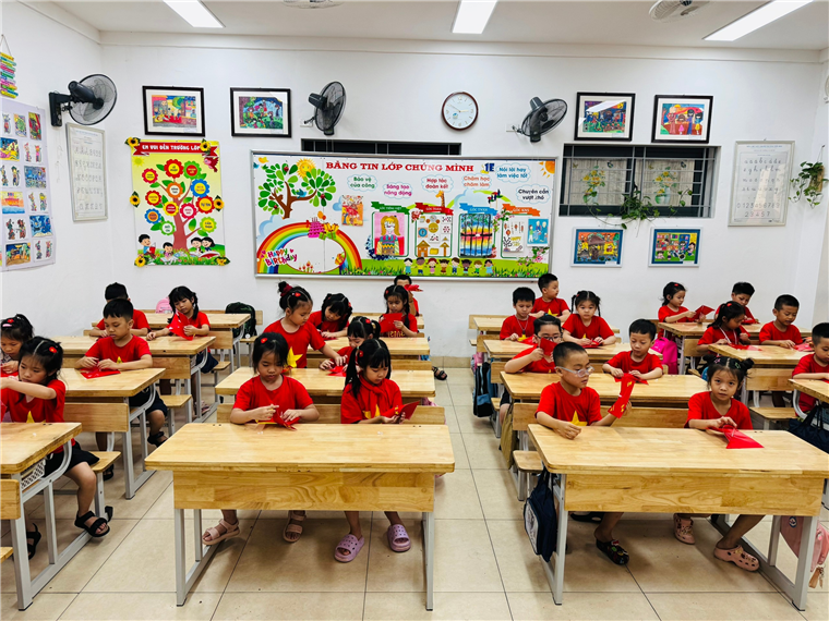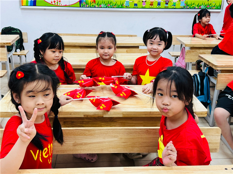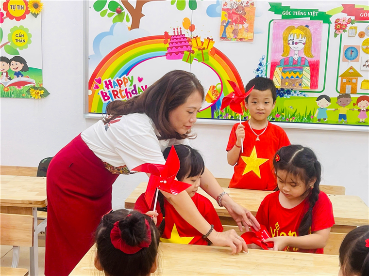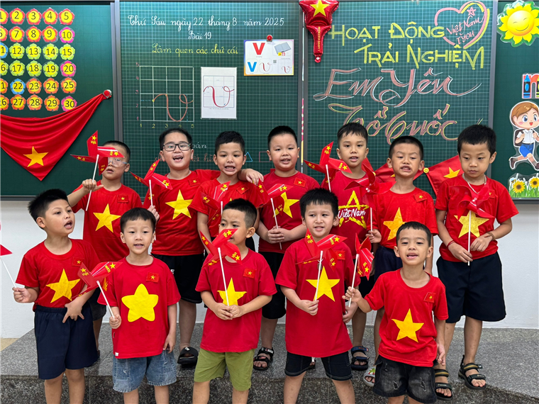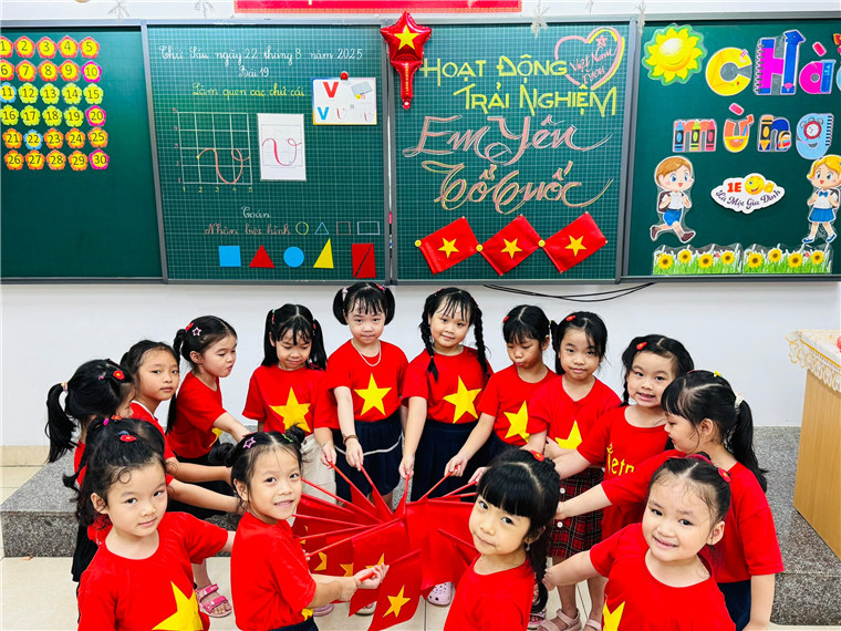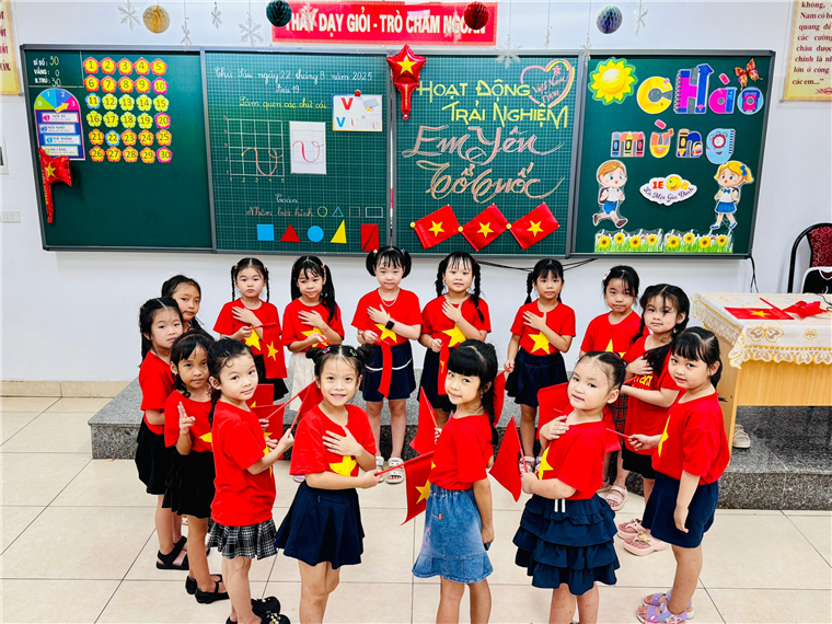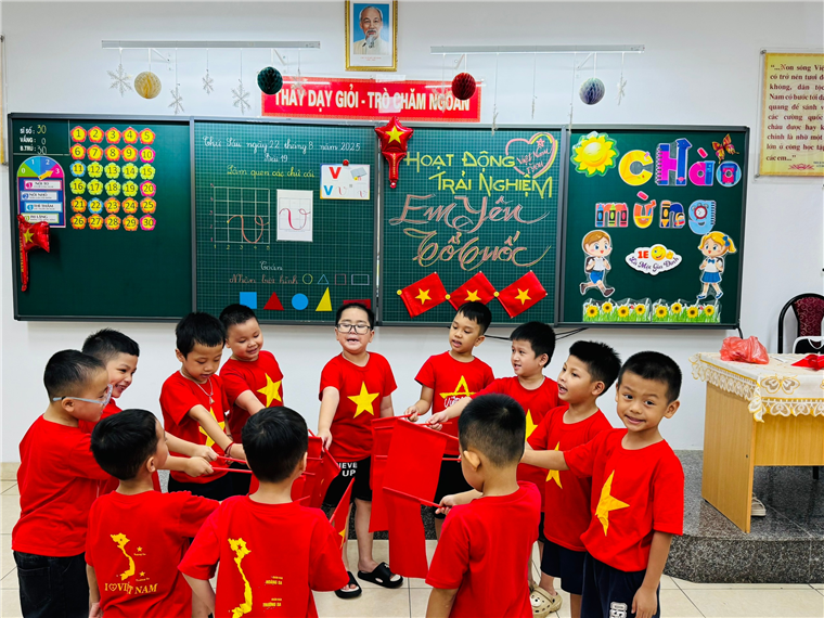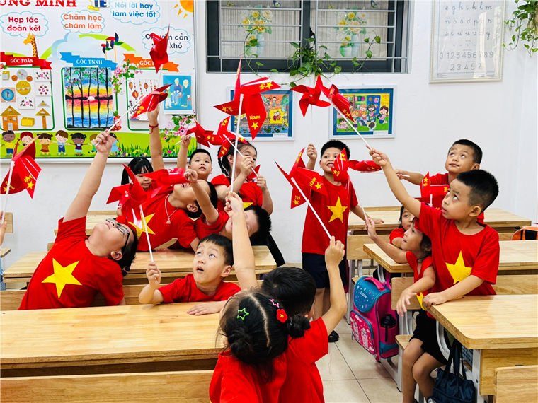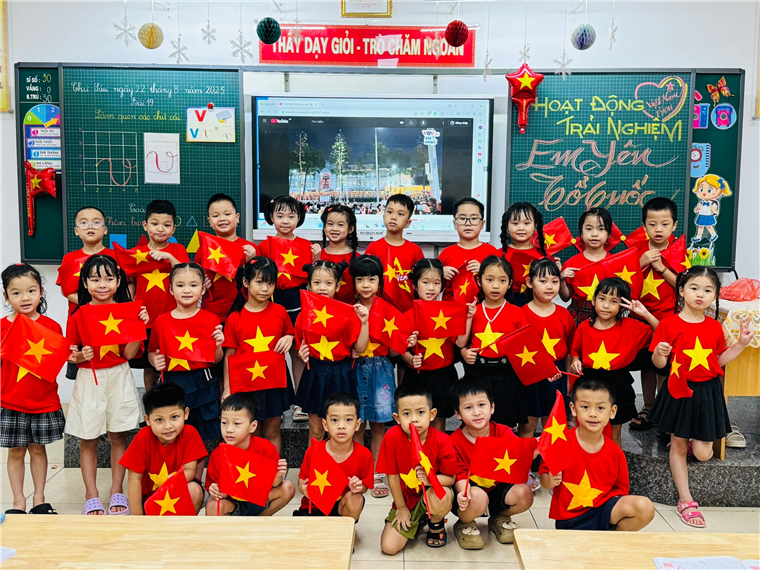 Tiết học Hoạt động trải nghiệm giúp các con có quyền tự hào về một thế hệ tương lai của đất nước. Dù các em chưa hiểu hết được những hy sinh máu xương của cha ông ta trong công cuộc giành lại độc lập tự do nhưng cùng với niềm tự hào dân tộc, các cô giáo đã luôn truyền lửa đến các con để tình yêu nước xuất phát từ trong trái tim mỗi bạn nhỏ.