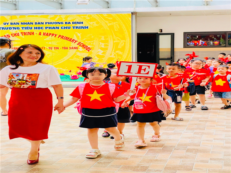 Hoà trong không khí hân hoan chào mừng 80 năm Quốc khánh 2/9, các bạn nhỏ lớp 1E trường Tiểu học Phan Chu Trinh đã cùng nhau cất cao tiếng hát bài ''Lá cờ Việt Nam''.