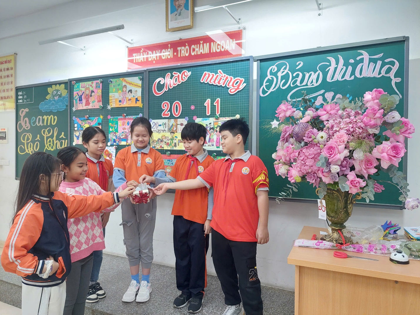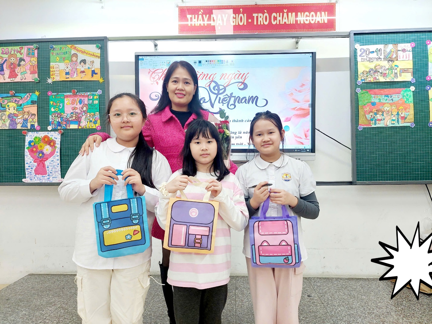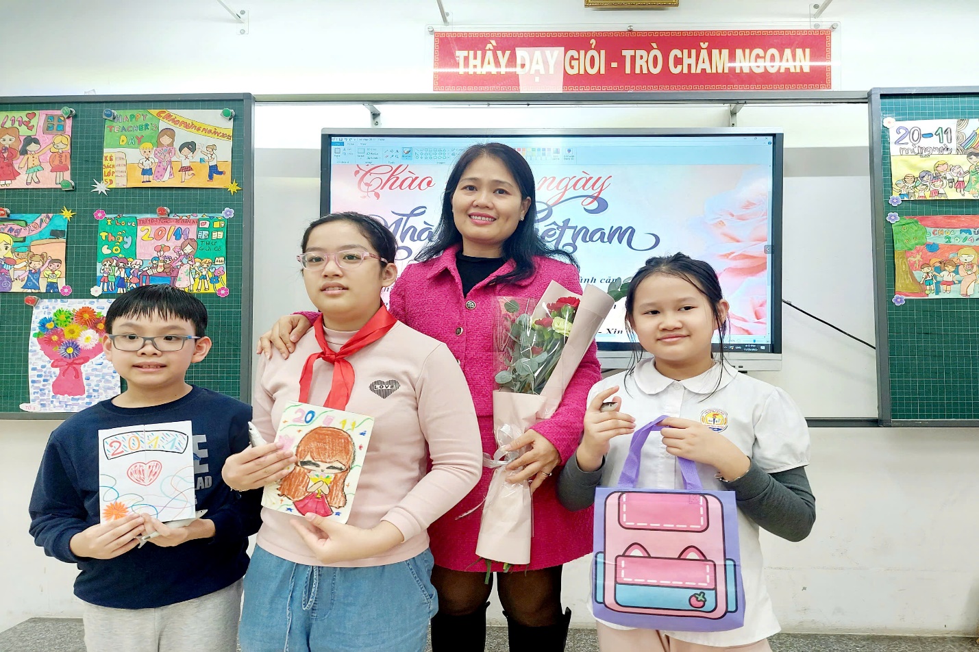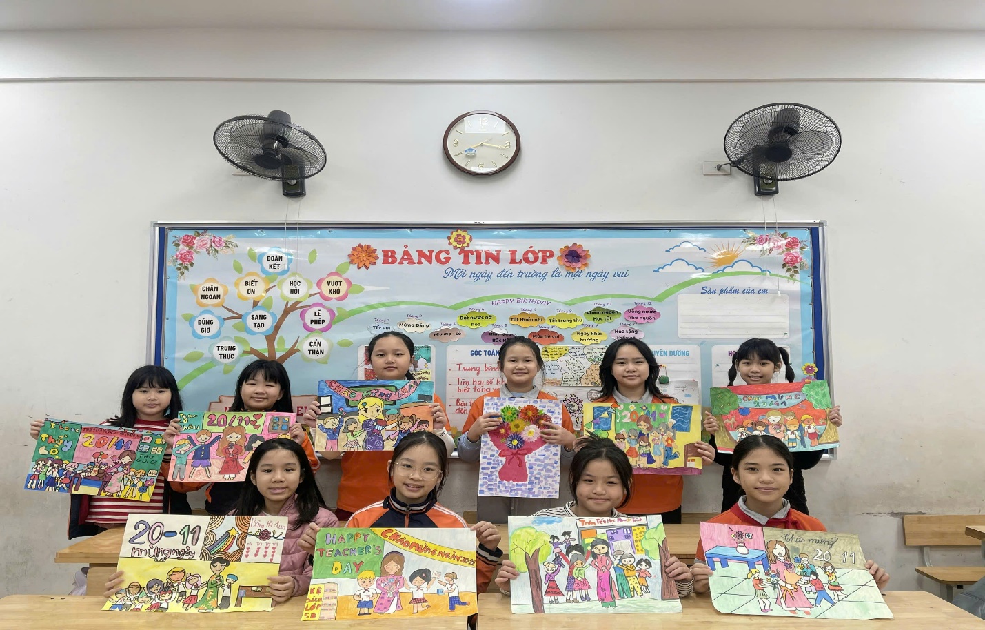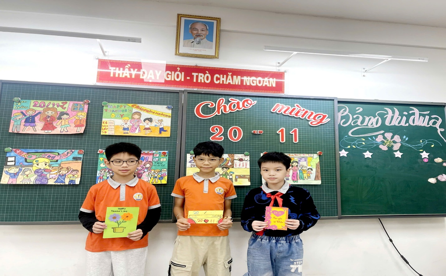 Các em học sinh còn rất hào hứng tự mình bình chọn những bức tranh, những tấm bưu thiếp đẹp nhất, ý nghĩa nhất để được nhận giải trong lễ kỉ niệm ngày Nhà giáo Việt Nam tại lớp. Niềm vui của các em được nhân lên gấp bội khi được các bạn tôn vinh, được lên nhận giải tại lớp.