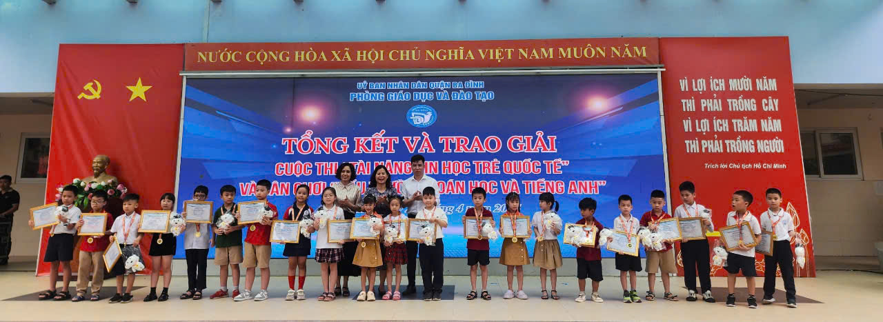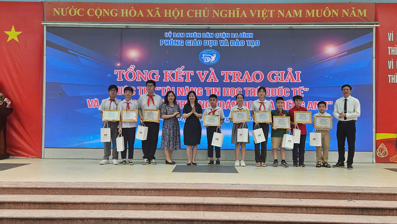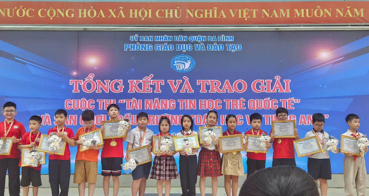Sáng ngày 23/4/2025, trong không khí rộn ràng của buổi lễ Tổng kết và Trao giải Cuộc thi “Tài năng Tin học Trẻ quốc tế” và Sân chơi “Đấu trường Toán học và Tiếng Anh” do Phòng GD&ĐT quận Ba Đình tổ chức tại trường TH Hoàng Hoa Thám, trường TH Phan Chu Trinh một lần nữa khẳng định vị thế là cái nôi nuôi dưỡng tài năng và khát vọng chinh phục tri thức khi vinh dự được xếp loại Tốt Tập thể cùng nhiều giải cao dành cho các học sinh xuất sắc.