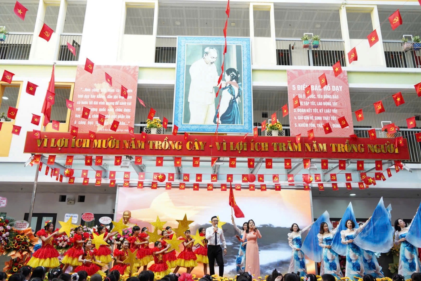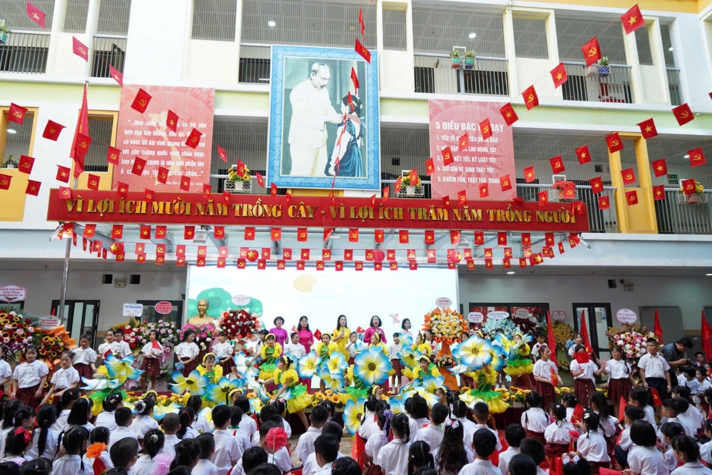 Những tiết mục văn nghệ tươi vui của học sinh đã làm cho buổi lễ càng thêm ấm áp, gợi nên tình yêu quê hương, đất nước, tình yêu mái trường cùng khát vọng tuổi thơ. Trong ánh mắt rạng ngời của học trò, trong niềm tin lấp lánh của thầy cô, tất cả như gửi gắm lời hứa: sẽ nỗ lực hết mình để viết tiếp những trang thành tích vẻ vang của nhà trường.