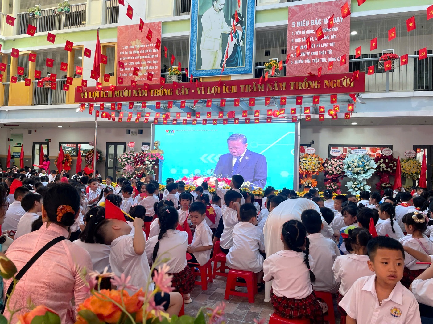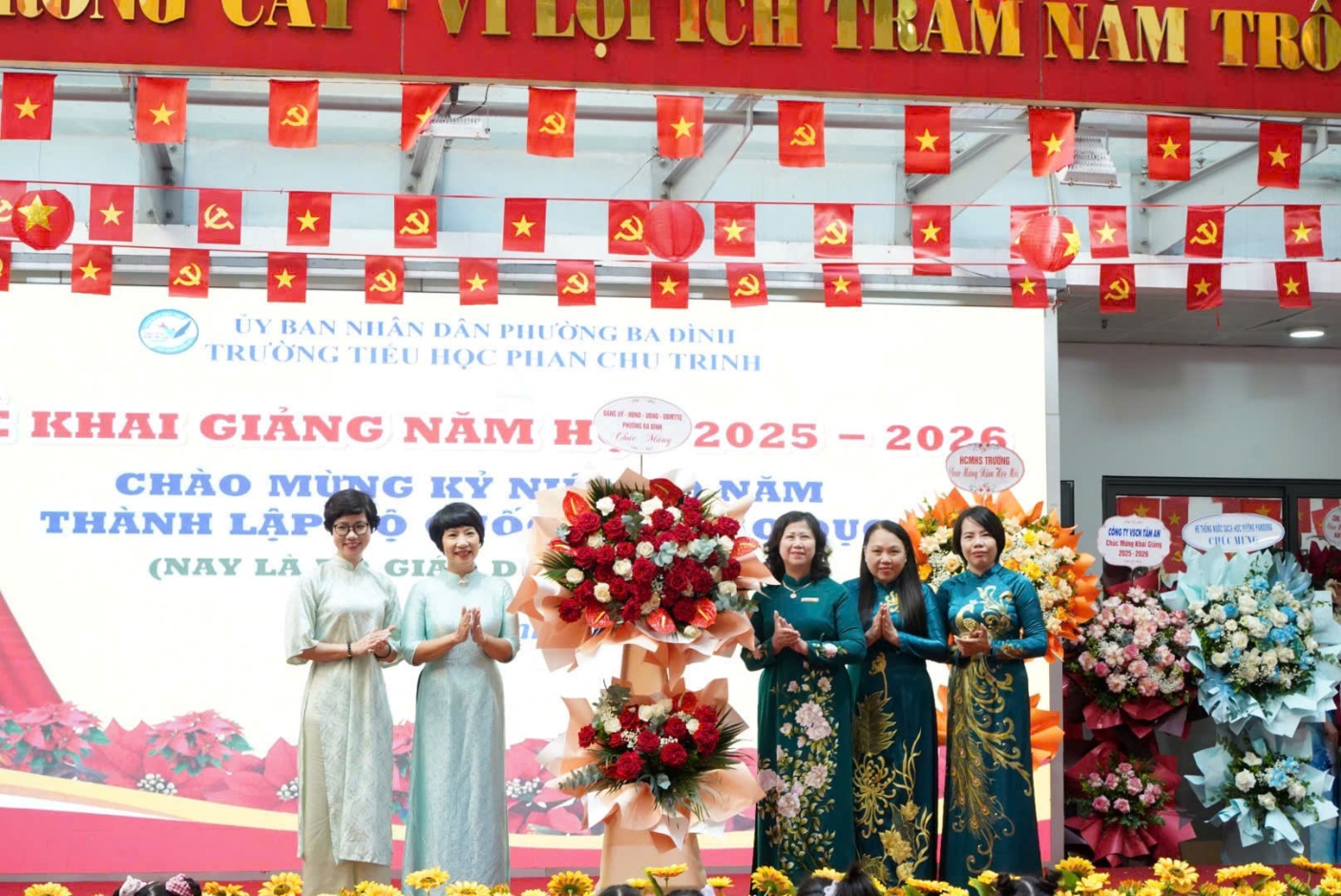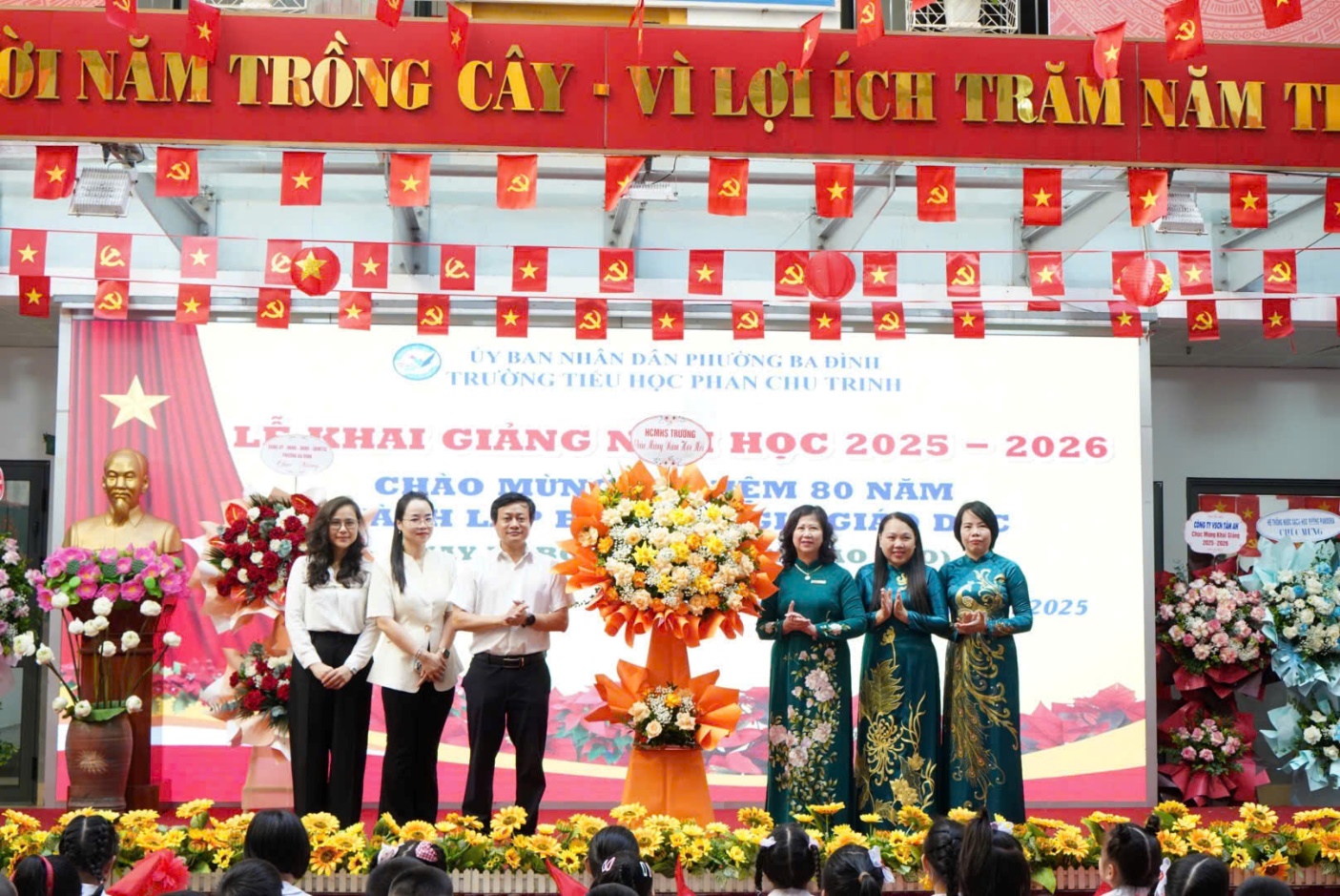 Lễ khai giảng năm nay mang dấu ấn thật đặc biệt: ngành Giáo dục kỷ niệm 80 năm thành lập Bộ Giáo dục và Đào tạo. Trong phần nghi thức tại trường cô giáo Hoàng Thị Lan Hương – Bí thư chi bộ, Hiệu trưởng nhà trường đọc diễn văn khai mạc. Đại diện Đảng ủy, Ủy Ban phường Ba Đình, đại diện Hội Cha mẹ Học sinh chúc mừng nhà trường nhân dịp năm học mới.