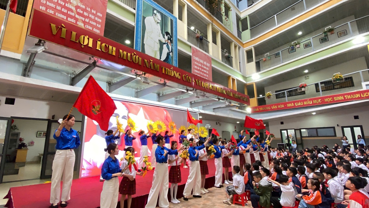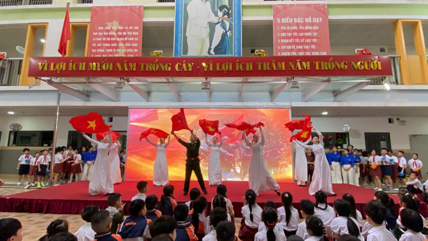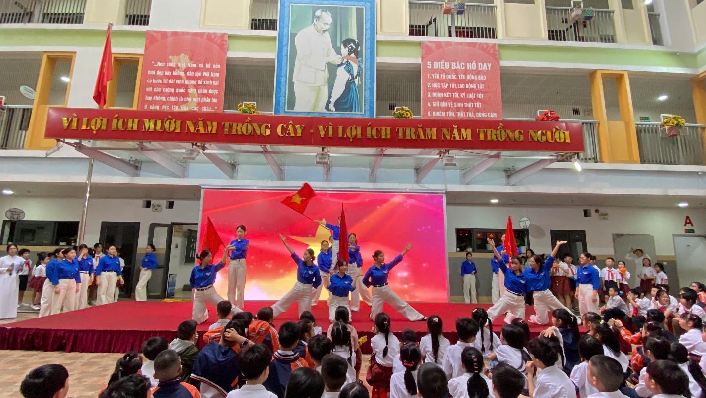 Không khí ngày hội càng trở nên bùng nổ với chuỗi tiết mục văn nghệ đặc sắc, được dàn dựng công phu và tràn đầy năng lượng tuổi trẻ. “Hát vang trong kỉ nguyên mới” ngân lên như lời khẳng định mạnh mẽ về khát vọng vươn xa của thế hệ hôm nay. Liên khúc “Tự hào Việt Nam” chạm đến trái tim người nghe bằng những giai điệu tha thiết, khơi dậy niềm kiêu hãnh dân tộc. Và “Tuổi trẻ thế hệ Bác Hồ” vang lên như một lời nhắn nhủ sâu sắc về lý tưởng sống đẹp, sống có ích – kim chỉ nam cho mỗi bạn nhỏ trên hành trình trưởng thành.