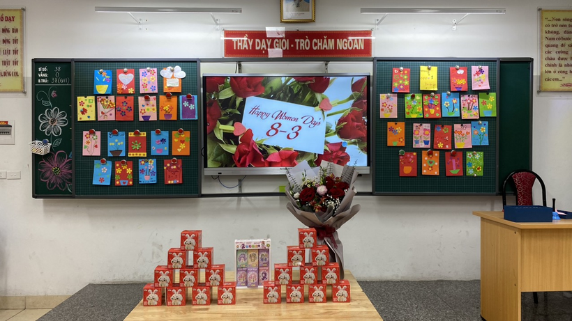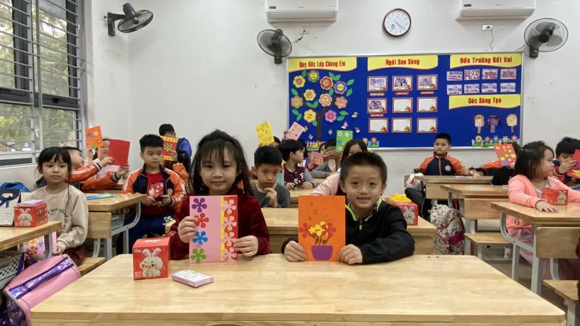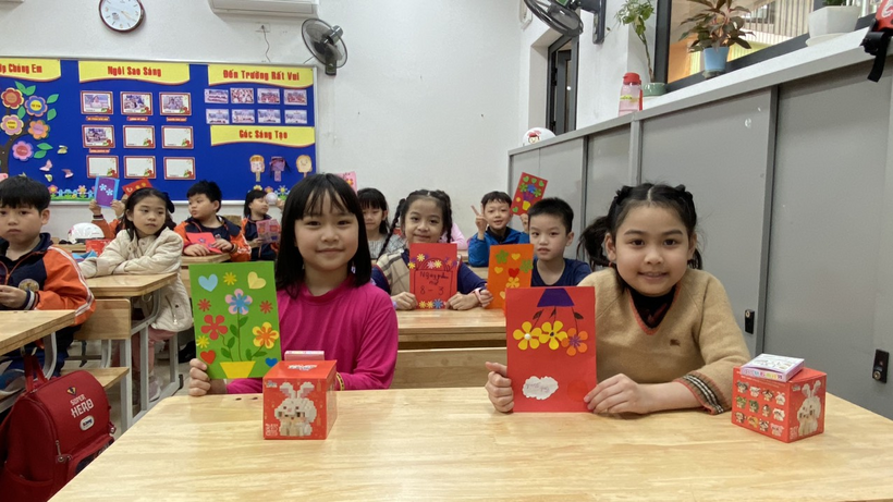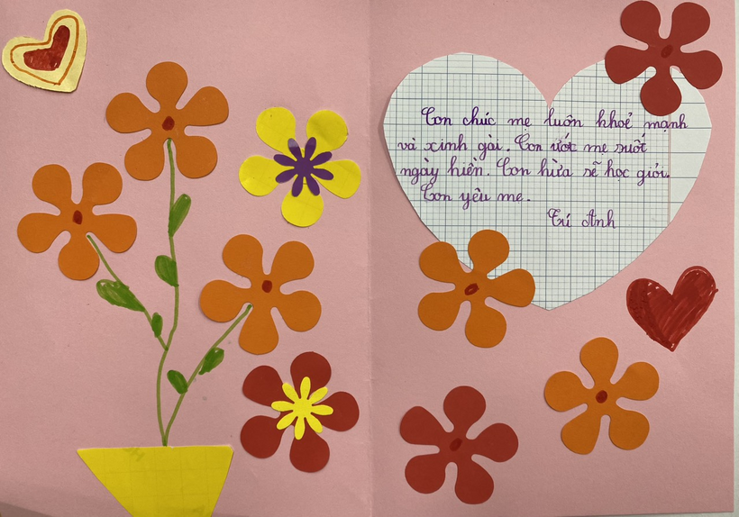 Cầm trên tay những bức thiệp độc đáo do chính những bàn tay nhỏ bé mà khéo léo của các em sáng tạo, các bà, các mẹ và các cô giáo không khỏi xúc động.