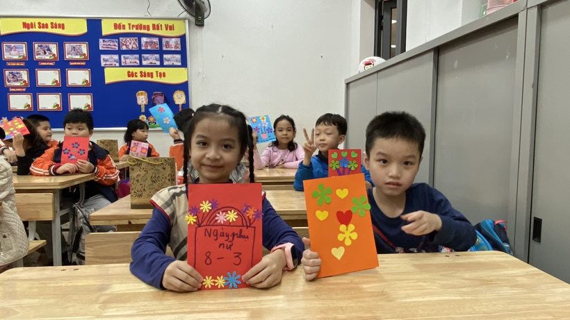 Hoạt động này không chỉ góp phần làm phong phú thêm các hoạt động chào mừng Ngày Quốc tế Phụ nữ trong nhà trường mà còn nhắc nhở các em về một tình cảm thiêng liêng, vô cùng quý giá sẽ theo các em trong suốt cuộc đời. Dưới đây là một số hình ảnh của hoạt động làm thiệp chúc mừng Ngày Quốc tế Phụ nữ của các bạn nhỏ khối 2.