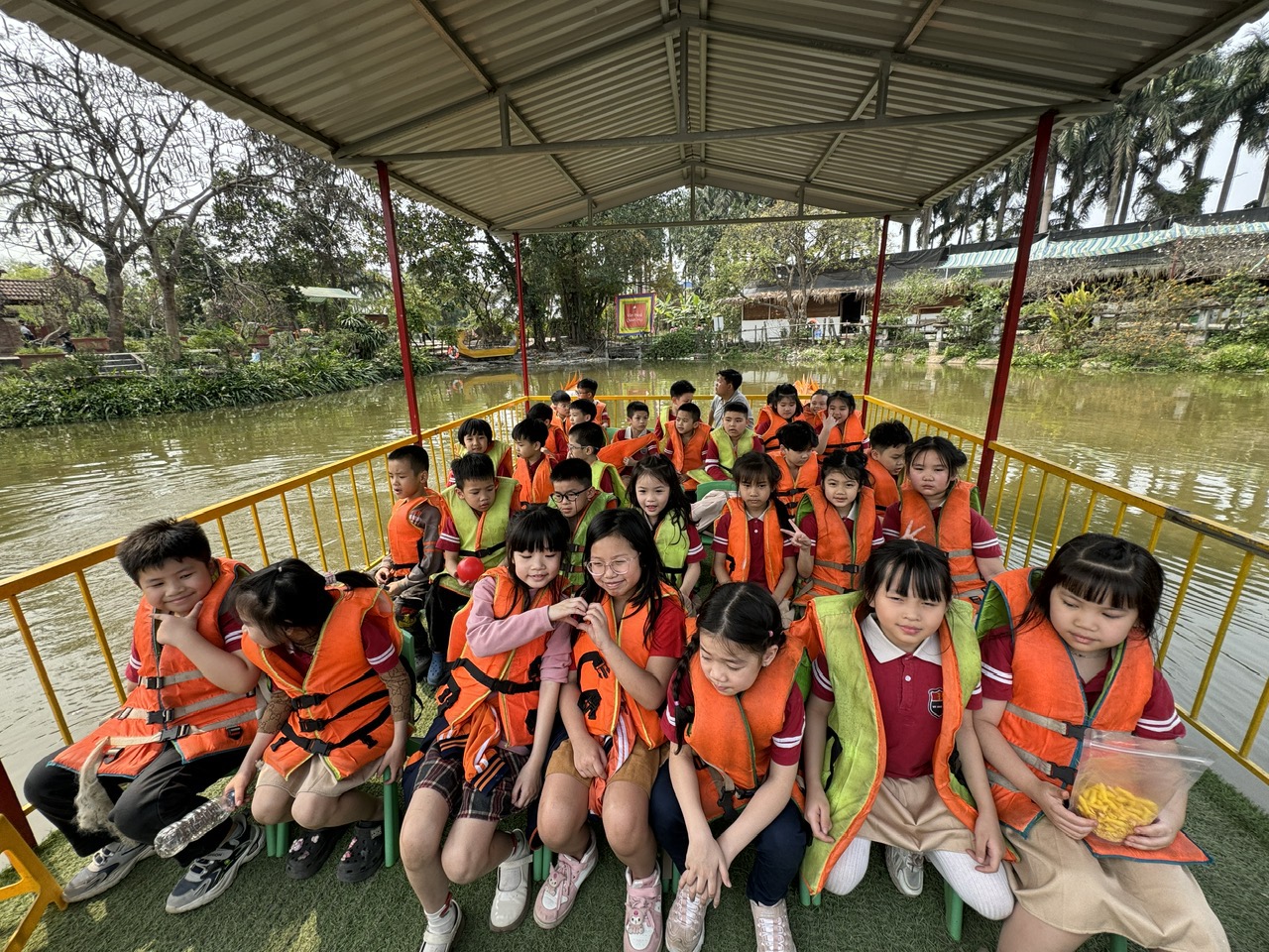 Học sinh lớp 2B hào hứng check-in tại Khu sinh thái Thu Thuỷ Ecolodge.