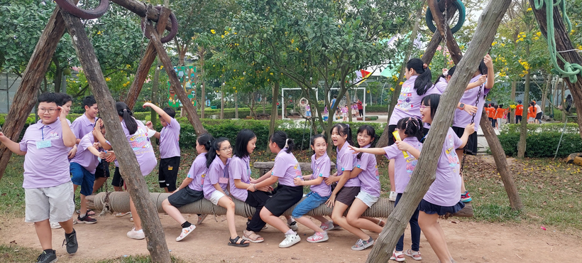 Sau giờ nghỉ trưa, các lớp lại tiếp tục với các hoạt động tại Khu trải nghiệm Phù Đổng Green Park. Và phần sôi động nhất chính là Teambuilding tại sân khấu chính của Green Park.