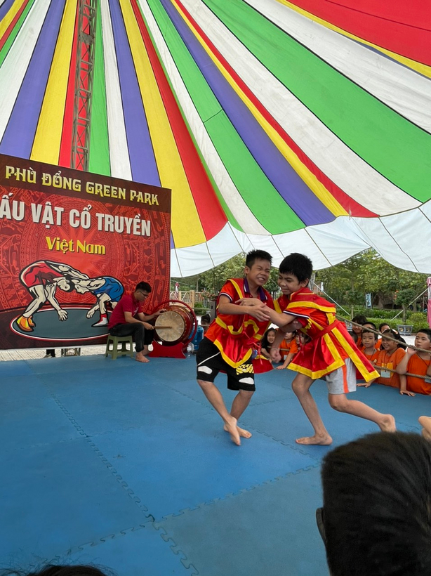 Tại khu trải nghiệm sinh thái Green Park- Phù Đổng các em đã được tham gia các hoạt động gần gũi với thiên nhiên như: khu chăn nuôi, vườn cây, ao cá, ... rồi tham gia các hoạt động thể thao: chơi bóng rổ, đi xe đạp địa hình, chơi golf mini trên cỏ, ... thi đấu vật, in tranh Đông Hồ ... Học sinh các khối lớp tham gia các hoạt động thật sôi nổi, đầy hứng khởi.