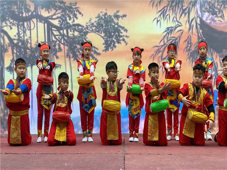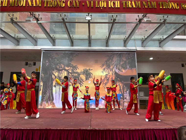Các bạn lớp 4A mang đến tiết mục Remix “ Trống cơm” mang đậm bản sắc dân tộc nhưng rất hiện đại, ấn tượng.