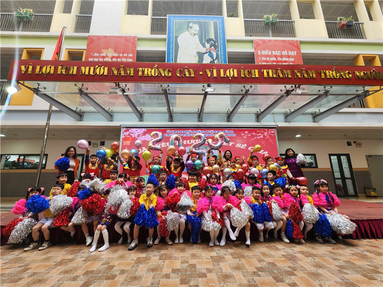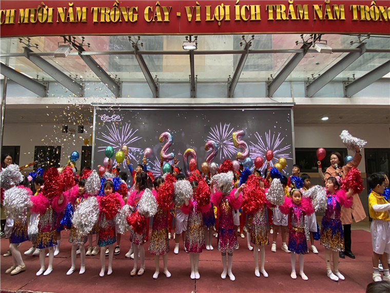 Kết thúc chương trình, tập thể các thầy cô giáo và lớp 4A, 1C cùng hòa nhịp trong liên khúc “Happy New Year”. Thầy trò nhà trường đứng đạy tham gia hoạt động “ Đếm ngược chào năm mới” cùng chào đón năm mới 2025 ngập tràn niềm vui và hạnh phúc.