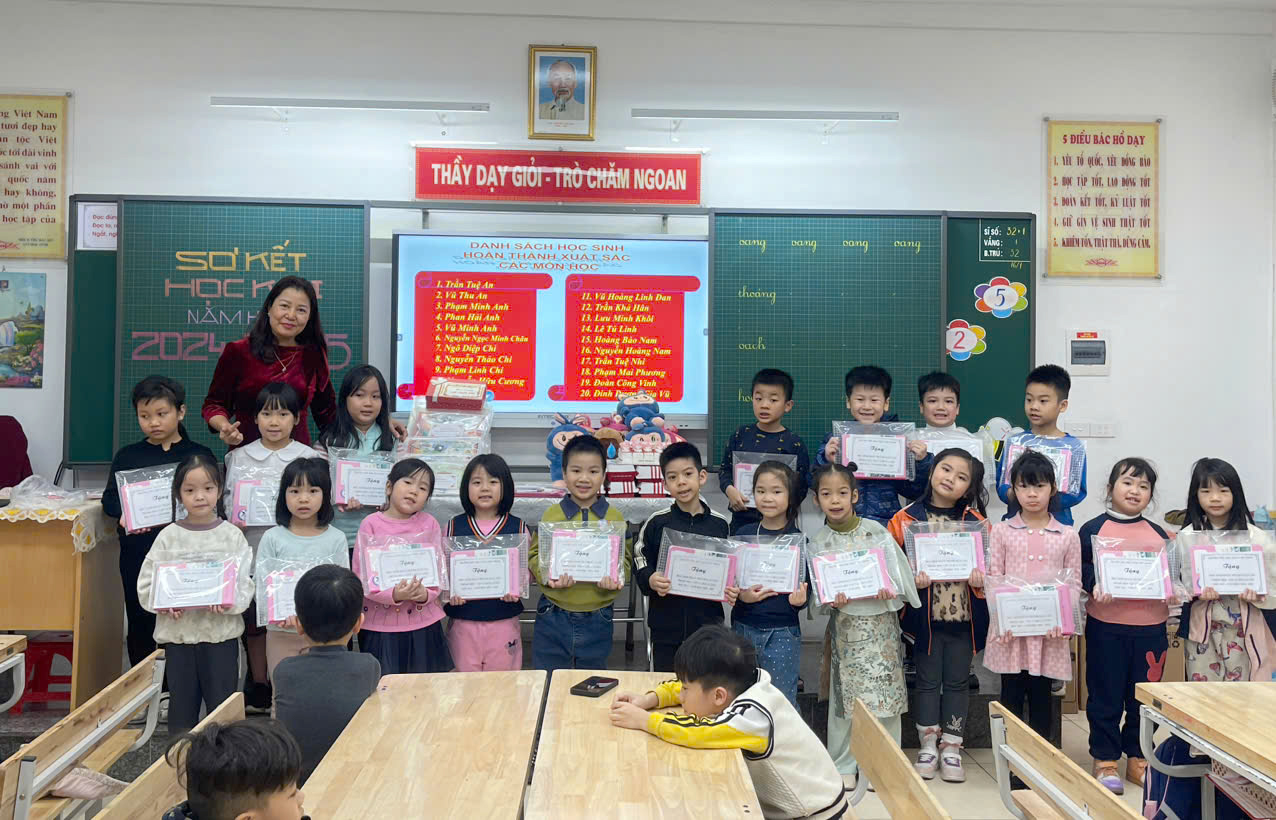Theo chia sẻ của cô giáo chủ nhiệm tại Hội nghị Cha mẹ học sinh cuối Học kỳ I, trải qua hơn 4 tháng học tập, các con học sinh lớp 1A đều rất ngoan ngoãn, lễ phép, có sự tiến bộ trông thấy trong cách giao tiếp với bạn bè, thầy cô. Trong đợt thi Học kỳ I vừa qua, phần lớn các con đều đạt điểm 9, 10 đối với 2 môn Toán và Tiếng Việt. Hơn thế, tập thể lớp 1A cũng vinh dự được nhận danh hiệu lớp Xuất sắc của nhà trường.