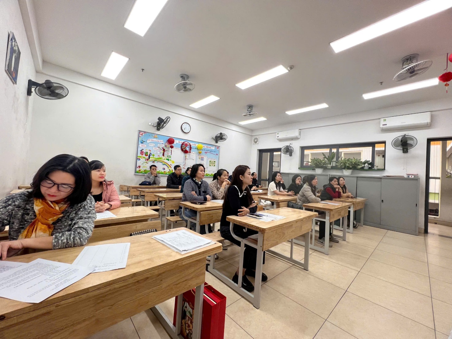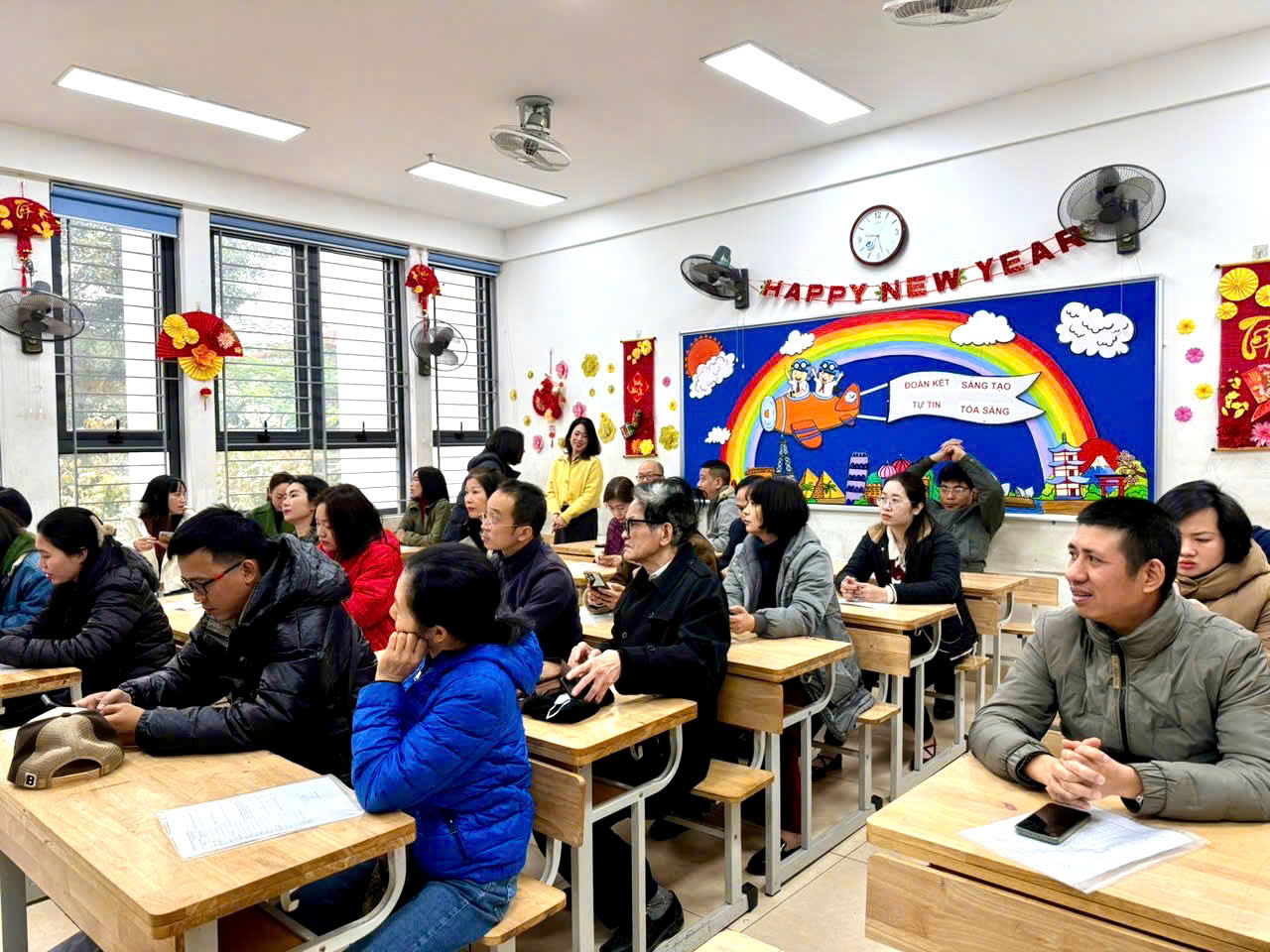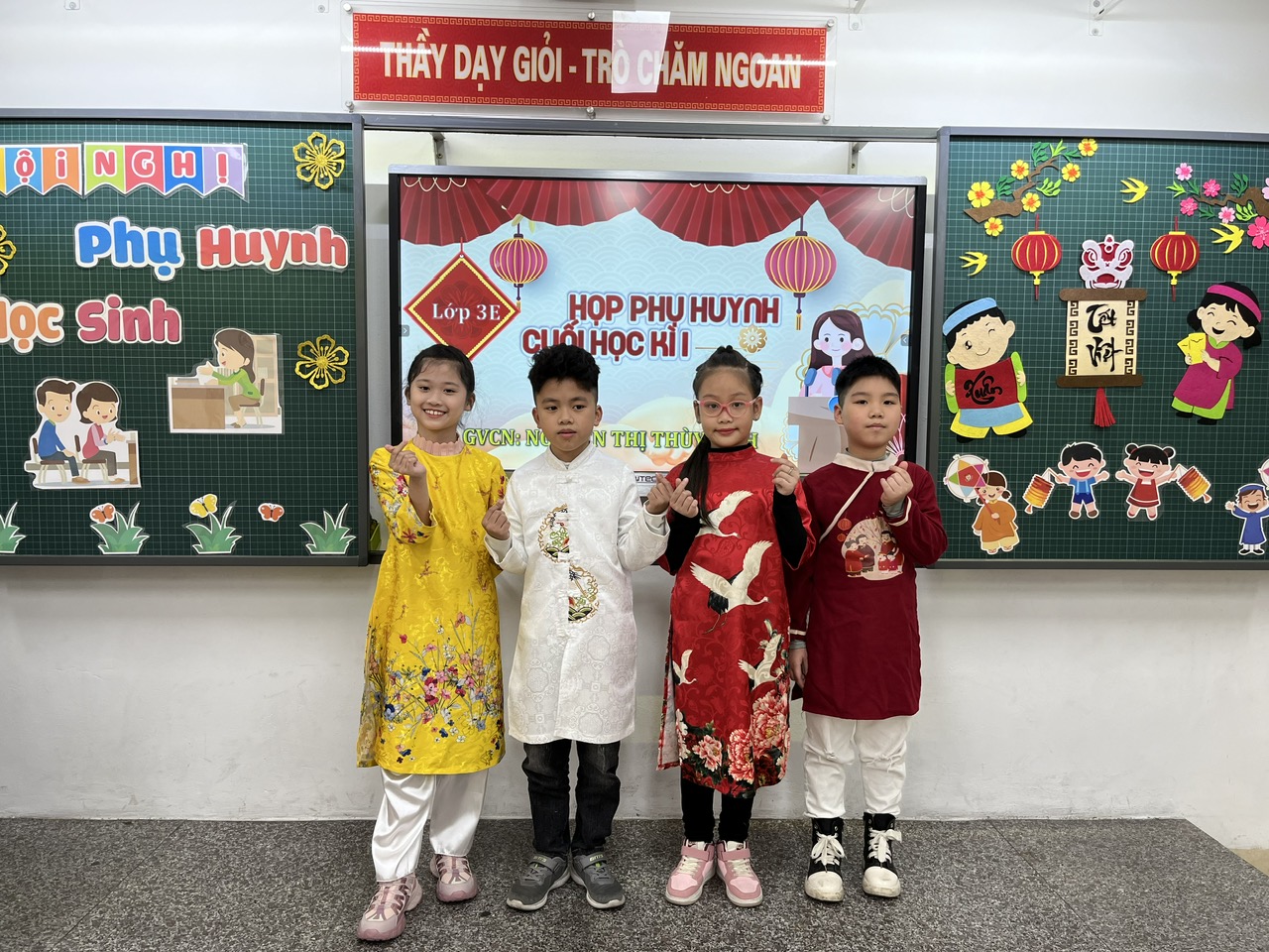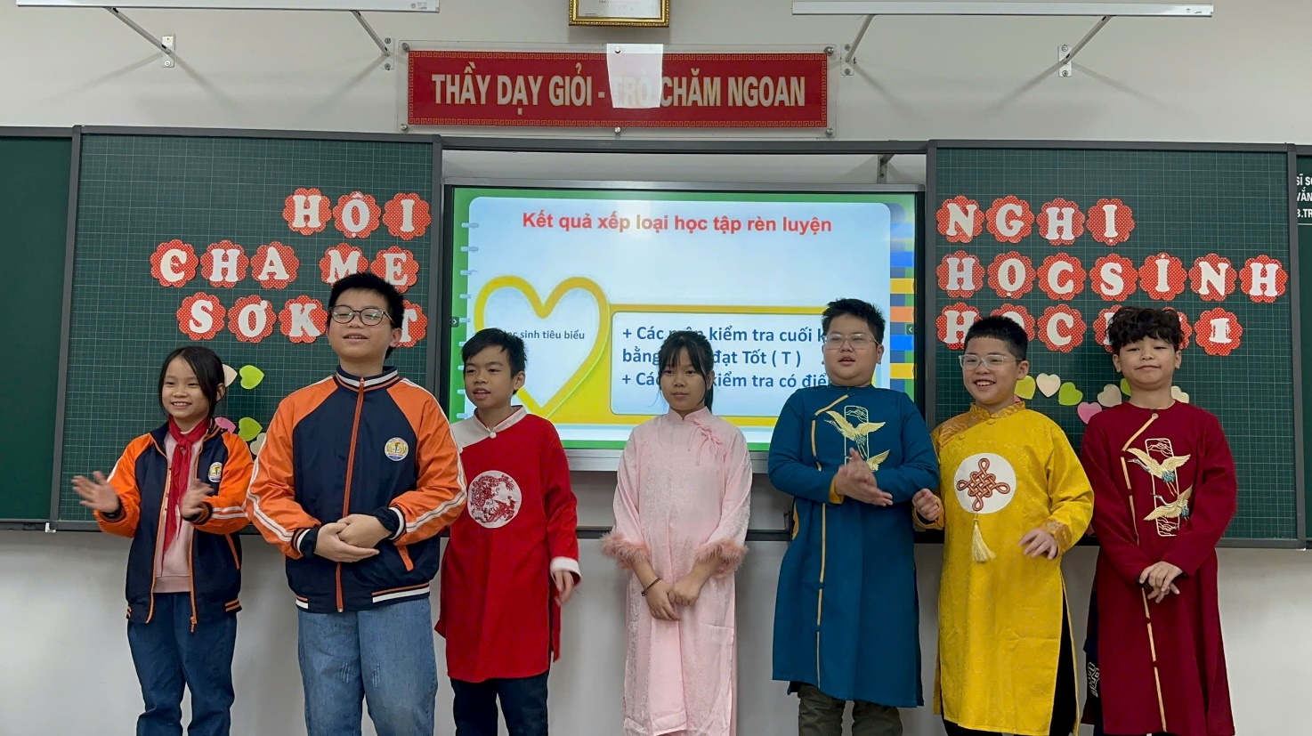 Trong buổi họp, thầy cô giáo không chỉ truyền đạt thông tin mà còn chia sẻ những câu chuyện nhỏ về sự cố gắng, tiến bộ của từng học sinh, khiến không khí trở nên nhẹ nhàng, đầy cảm xúc. Những lời trò chuyện chân thành, cởi mở, cùng nụ cười thân thiện của thầy cô đã xóa đi khoảng cách, làm phụ huynh cảm nhận được các thầy cô trân trọng, quan tâm đến từng cá nhân học sinh. Xen kẽ giữa các nội dung là những khoảnh khắc thú vị khi phụ huynh cùng xem lại những đoạn video ngắn ghi lại hoạt động học tập của các con, hoặc lắng nghe những lời chúc Tết đáng yêu từ chính các em qua các tấm thiệp tự tay làm. Sự tận tâm, gần gũi của thầy cô đã biến buổi họp không chỉ là một cuộc trao đổi thông tin mà còn là một dịp để kết nối và chia sẻ, giúp gia đình và nhà trường thêm phần gắn bó, đồng hành vì sự phát triển của các em học sinh.