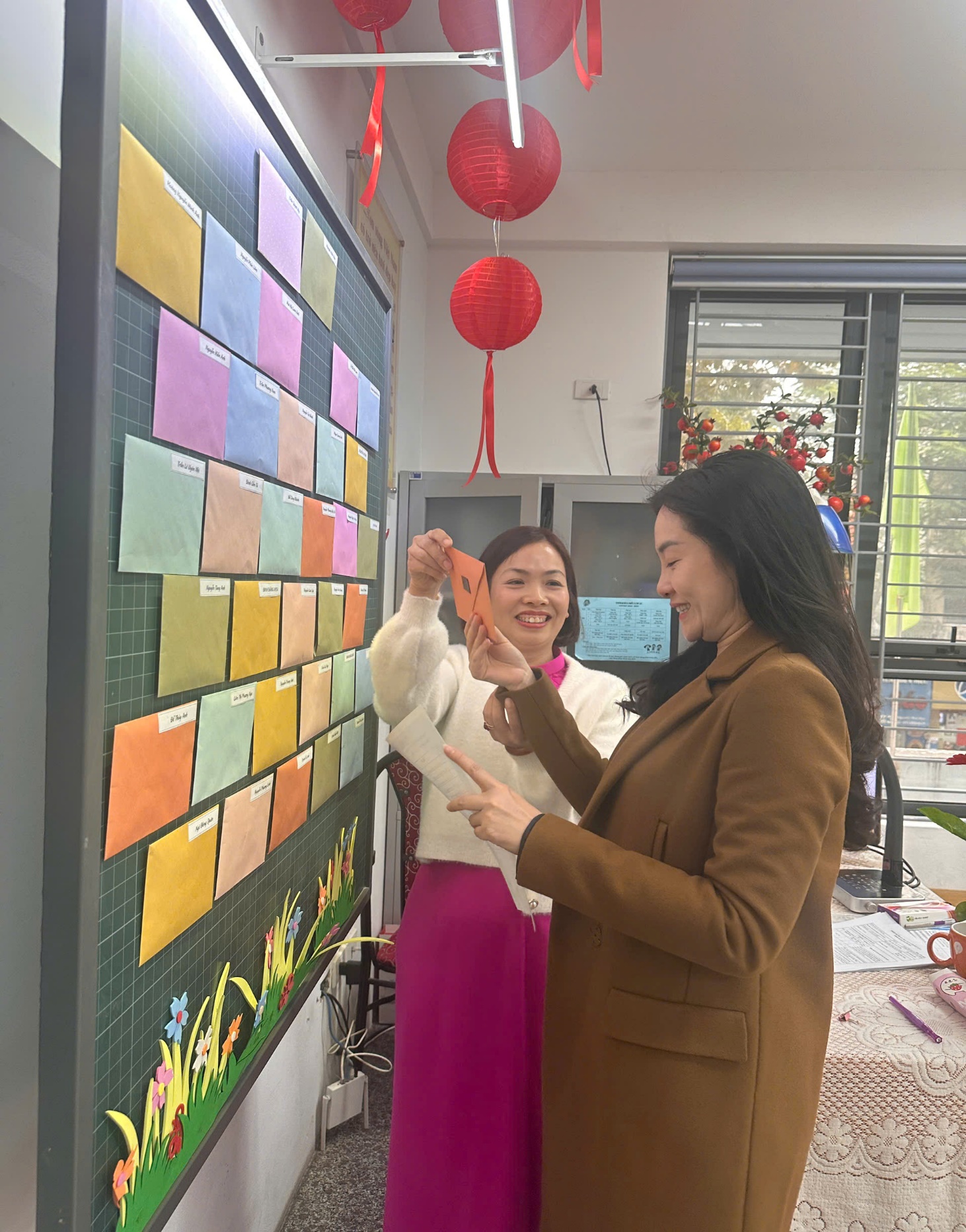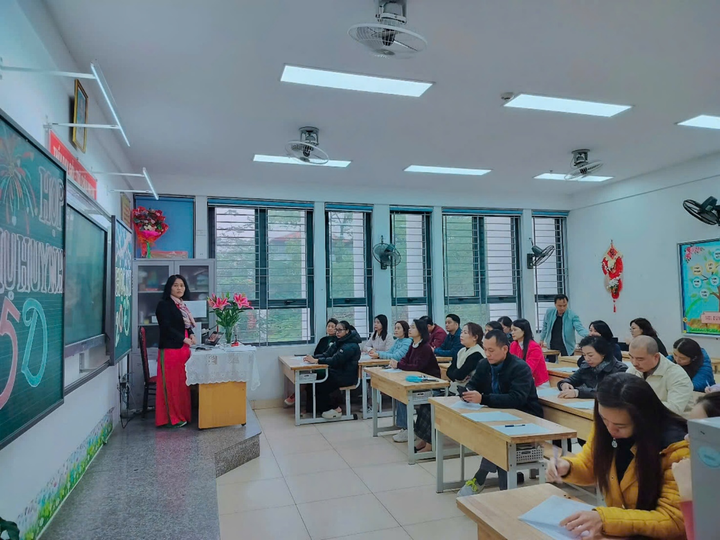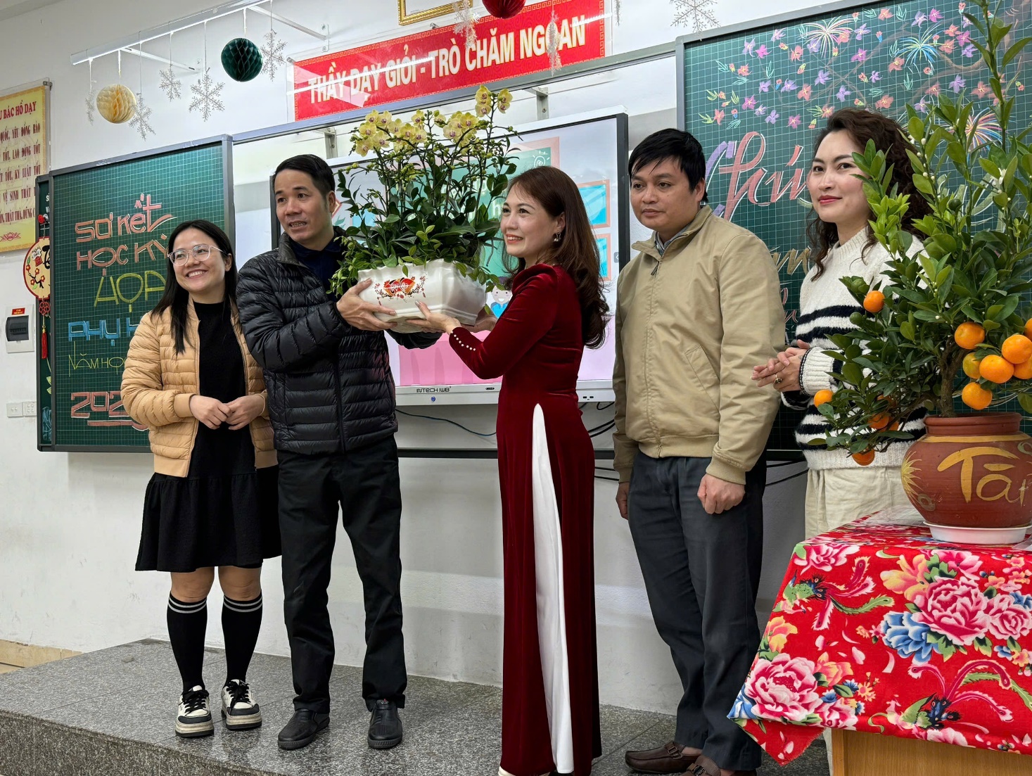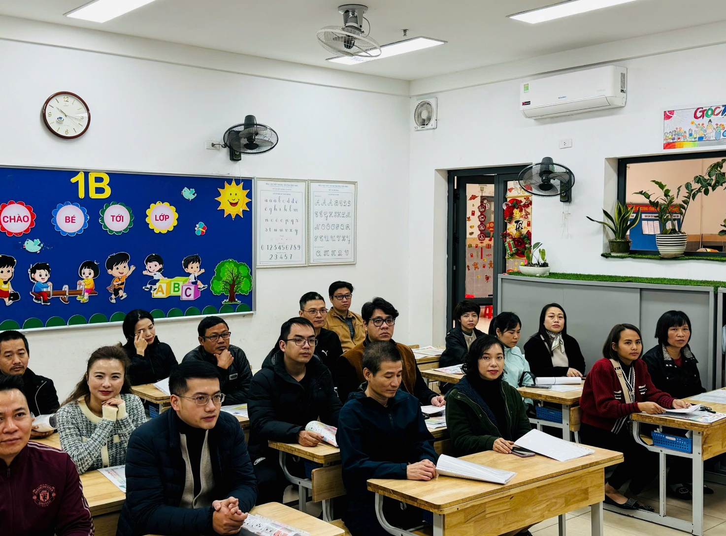 Trong buổi họp, thầy cô giáo không chỉ truyền đạt thông tin mà còn chia sẻ những câu chuyện nhỏ về sự cố gắng, tiến bộ của từng học sinh, khiến không khí trở nên nhẹ nhàng, đầy cảm xúc. Những lời trò chuyện chân thành, cởi mở, cùng nụ cười thân thiện của thầy cô đã xóa đi khoảng cách, làm phụ huynh cảm nhận được các thầy cô trân trọng, quan tâm đến từng cá nhân học sinh. Xen kẽ giữa các nội dung là những khoảnh khắc thú vị khi phụ huynh cùng xem lại những đoạn video ngắn ghi lại hoạt động học tập của các con, hoặc lắng nghe những lời chúc Tết đáng yêu từ chính các em qua các tấm thiệp tự tay làm. Sự tận tâm, gần gũi của thầy cô đã biến buổi họp không chỉ là một cuộc trao đổi thông tin mà còn là một dịp để kết nối và chia sẻ, giúp gia đình và nhà trường thêm phần gắn bó, đồng hành vì sự phát triển của các em học sinh.