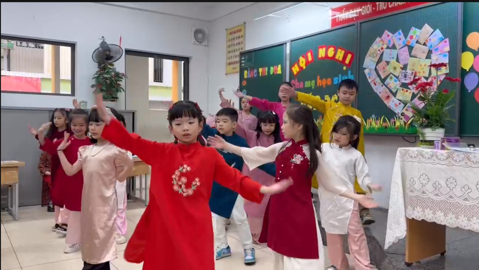 Niềm vui chưa dừng lại ở đó, trong buổi họp phụ huynh các con còn mang đến một tiết mục văn nghệ đầy bất ngờ và cảm xúc. Tiếng hát trong trẻo, điệu múa uyển chuyển của các con đã mang lại những nụ cười rạng rỡ trên môi, niềm hành phúc đến cho các bố mẹ và cô giáo. Qua những lời ca, điệu múa, các con không chỉ thể hiện tài năng mà còn gửi gắm tình yêu thương, sự biết ơn đến gia đình và các thầy cô. Đó còn là những khoảnh khắc mà các bố mẹ thực sự cảm nhận được sự hồn nhiên, đáng yêu và năng khiếu tiềm ẩn trong mỗi đứa con thân yêu.